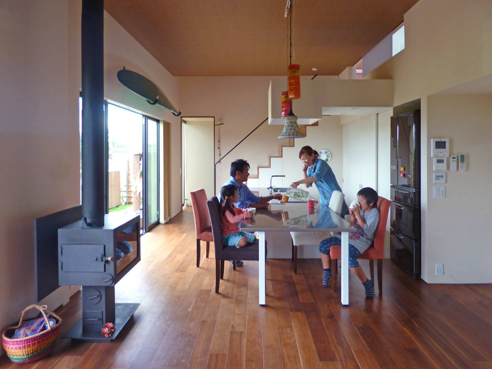 高天井・テラス・薪ストーブ・太陽光発電・木造2階建て設計監理 設計事務所アーキプレイス