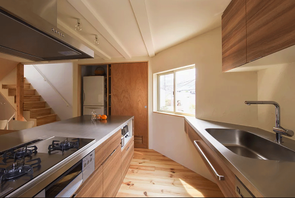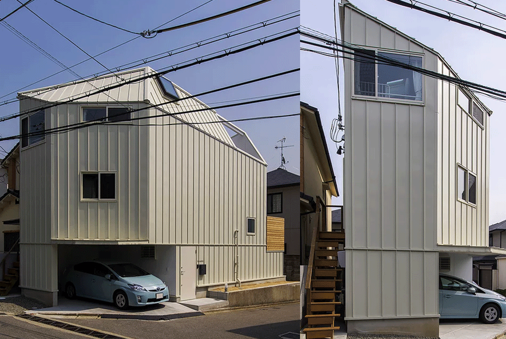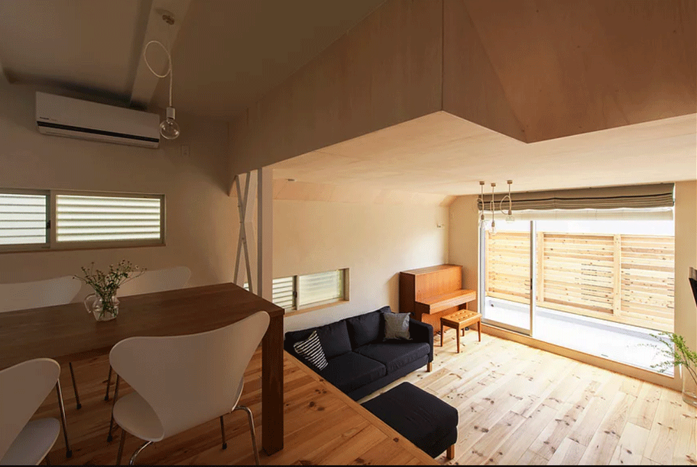 傾斜と細長い敷地形状を生かした空間構成の住宅です。