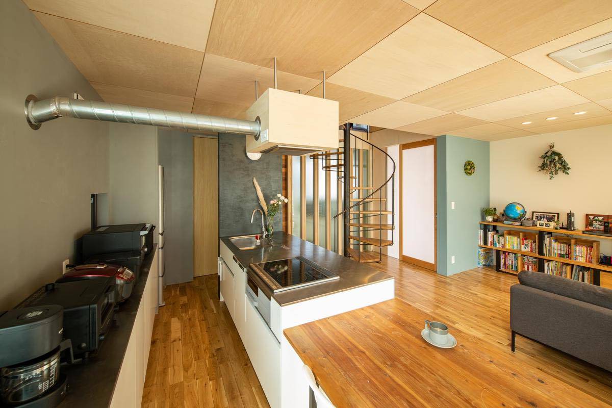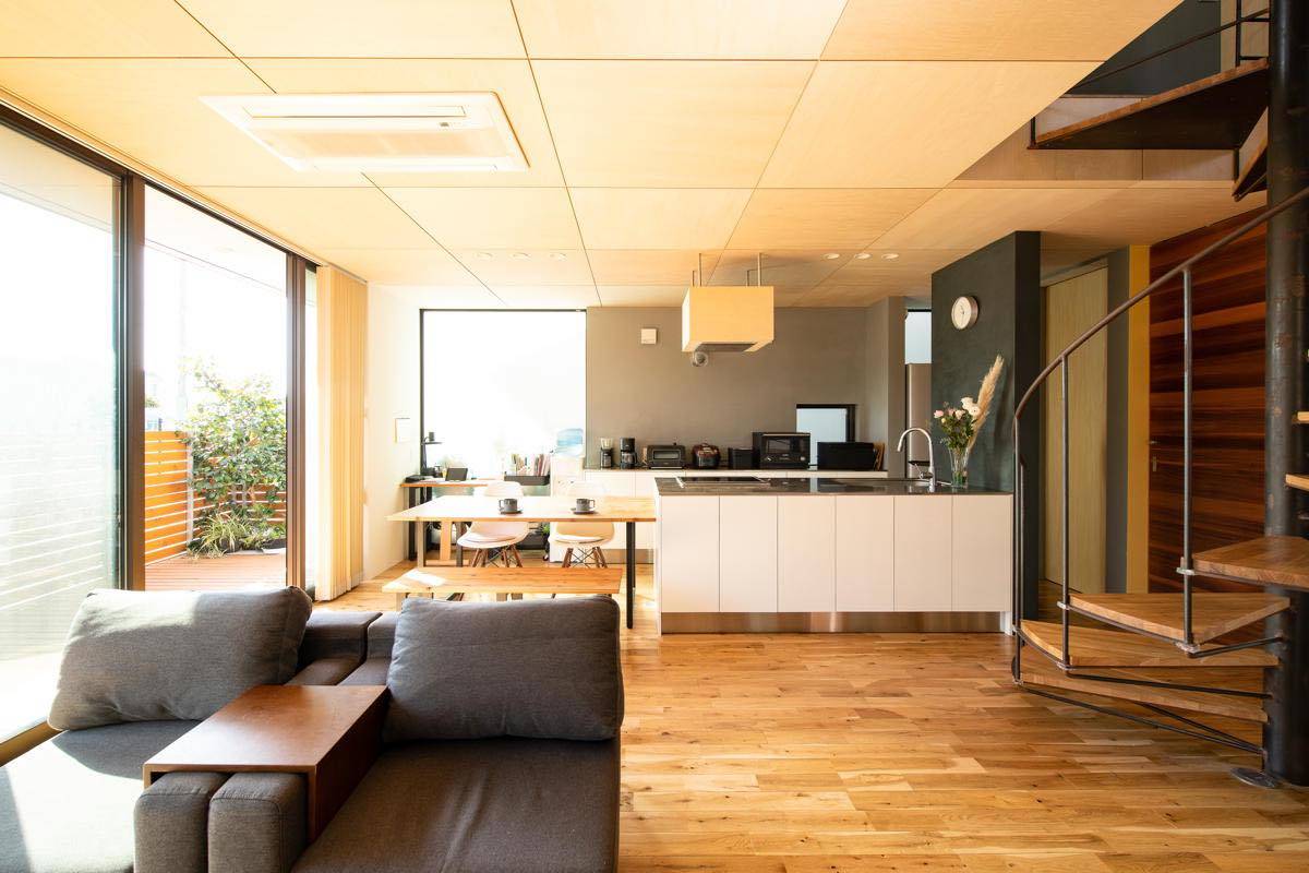 2階は外部にウッドデッキをグルリと半周まわし、プライバシーを確保しながらも視界が抜けて開放感が高く、明るい室内を実現した。