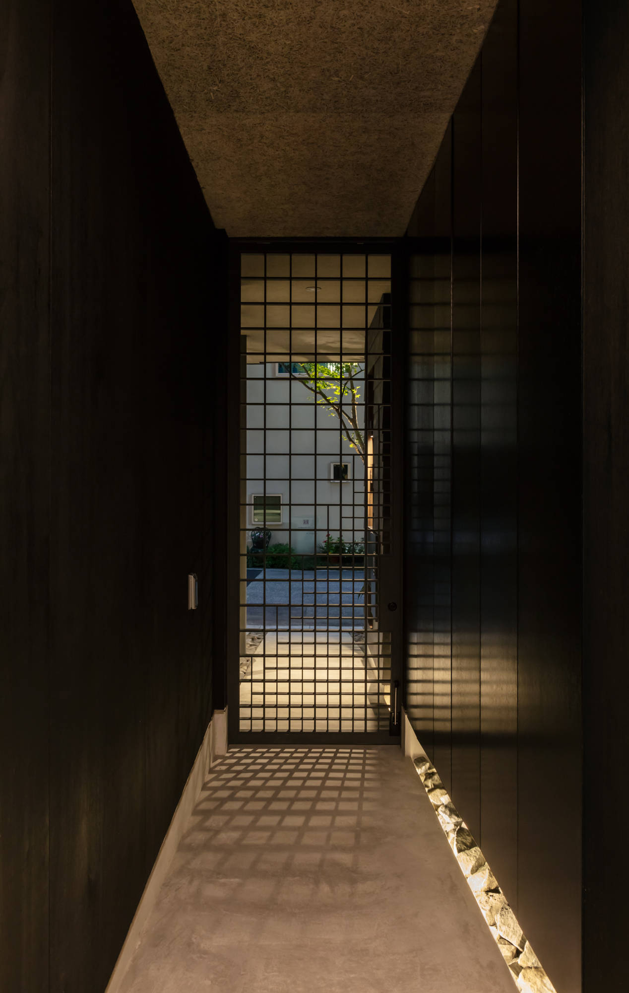 1階の道路側にはご主人の事務所を設け、アプローチから共用の土間に入り、そこからそれぞれの玄関があります。
