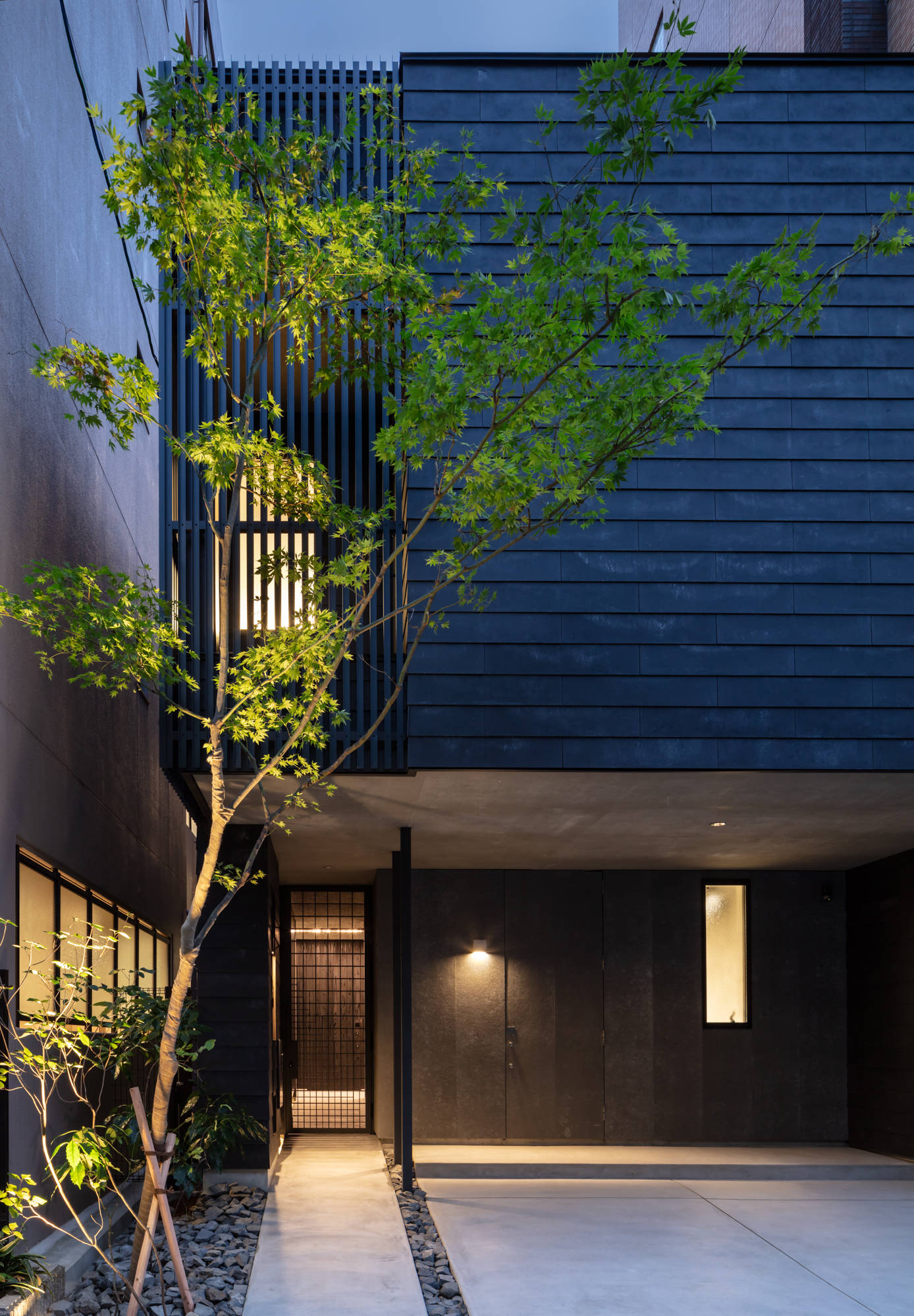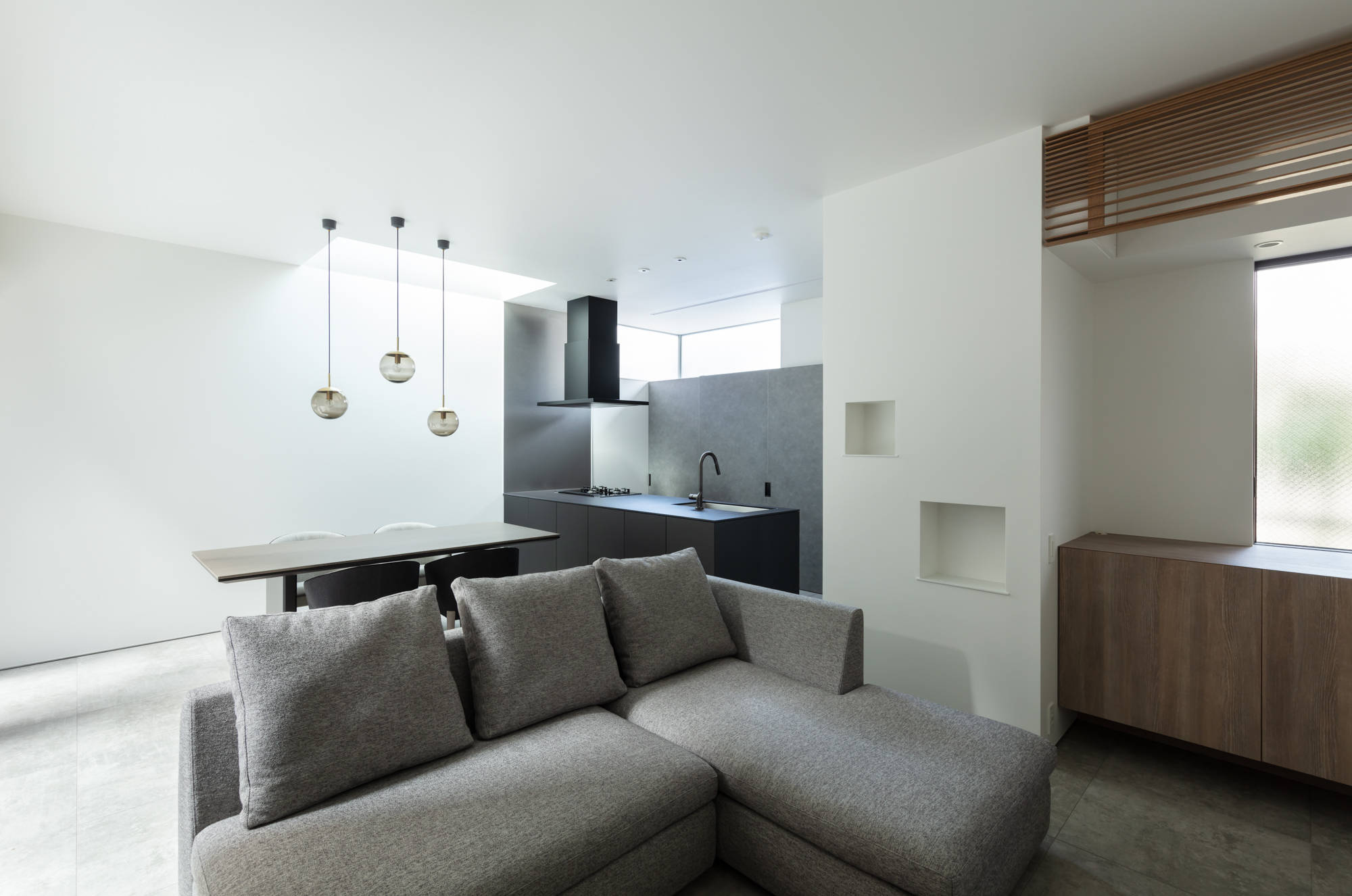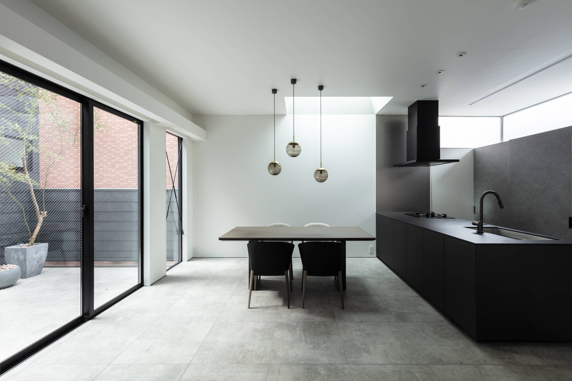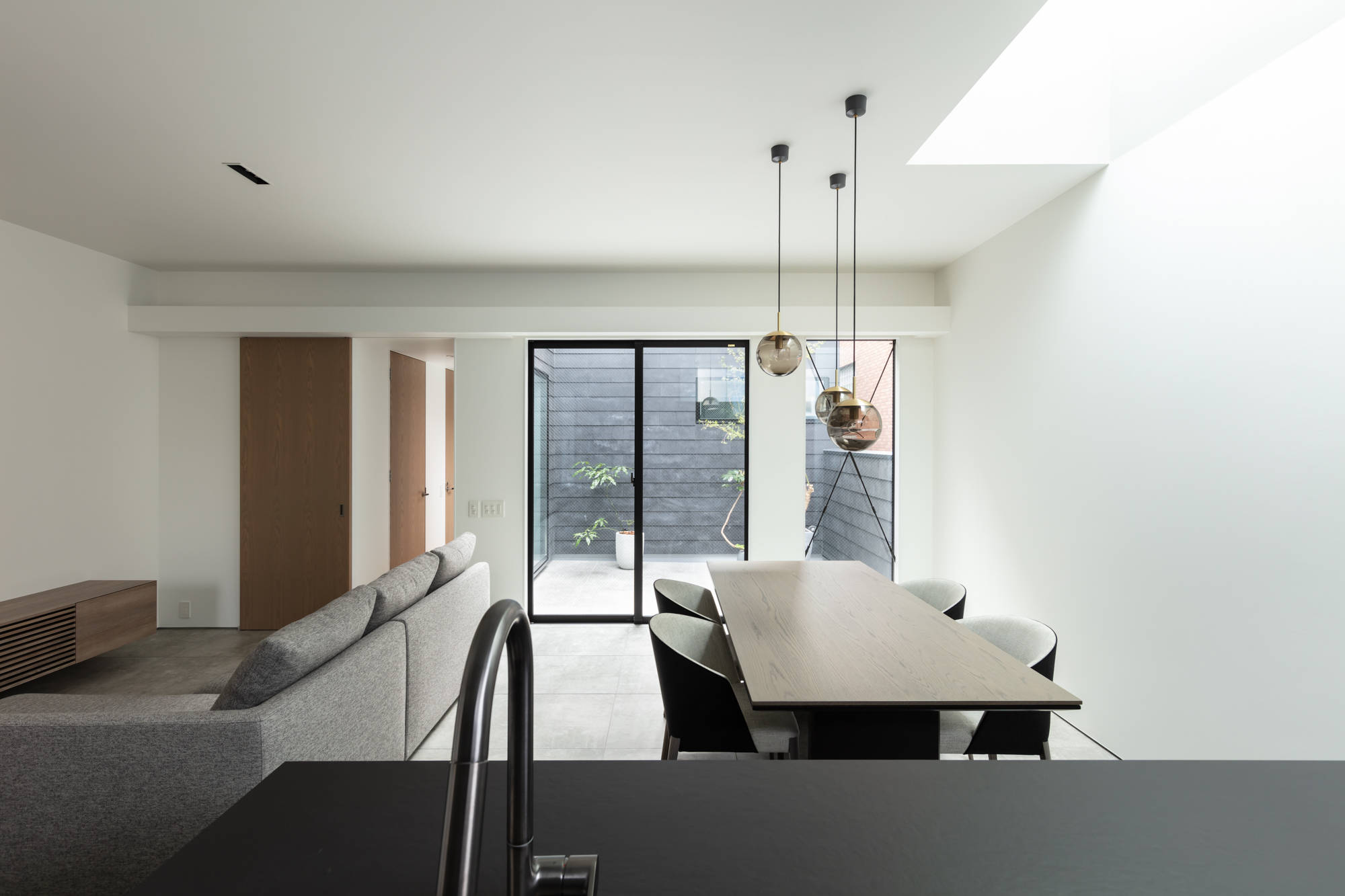 大阪市の天王寺区に建つ二世帯住宅です。3方を高層のマンションに囲まれた、光を得るのが厳しい敷地です。