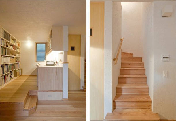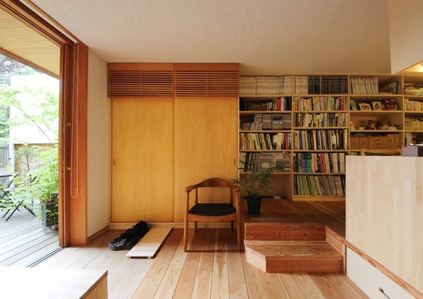 2階(+ロフト)は家族室としてのワンルームを、就寝スペース・子供スペース・収納スペース等に適宜分節して使っています。家族の成長や家族構成の変化に柔軟に対応できるフレキシブルな空間となっています。