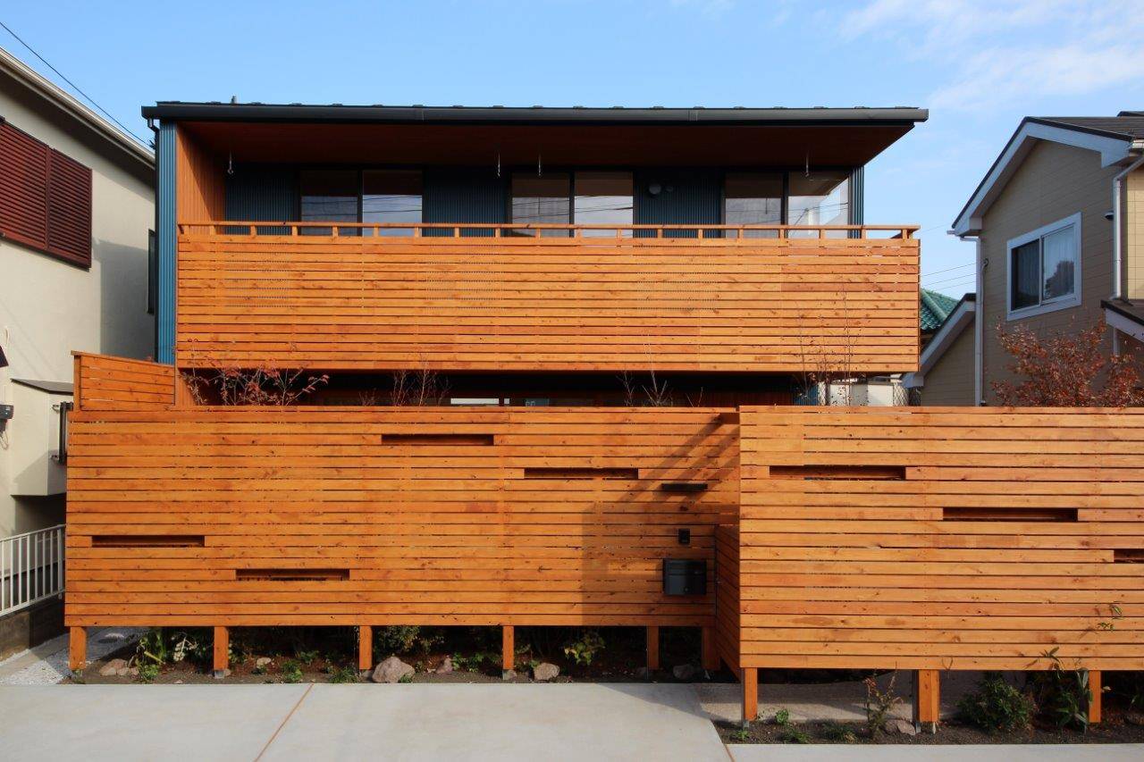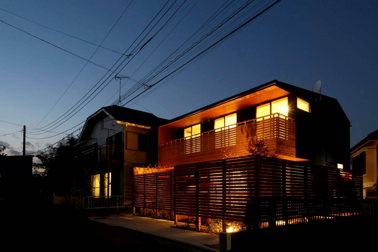 緑豊かな多摩丘陵の住宅地。南側が道路で日当たりがよい敷地条件を活かし、各室とも南側に大きく窓をとって「冬暖かな家に」という住まい手の要望にシンプルに応えました。窓前には深い軒の出をとり、夏の日射遮蔽にも配慮しています。遠くの丘まで見渡せる眺めの良い2階バルコニーでは、野球やサッカーに打ち込む二人の息子さんたちのユニフォームなど日々大量の洗濯物も気持ちよく干すことができます。