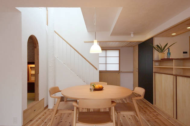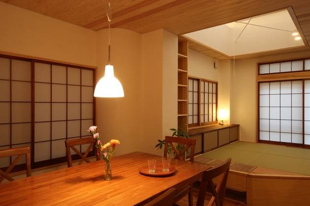 もともと光が入りづらかった1階リビング部分や3階ダイニング部分には新たに吹き抜けを設け、光降りそそぐ住空間を実現しました。