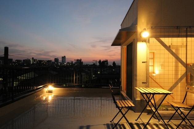 屋上は眺めが良く、お子さんが遊ぶにも、パーティをするにも恰好なスペースです。今回、照明の設置とツタ類による緑化を行いました。