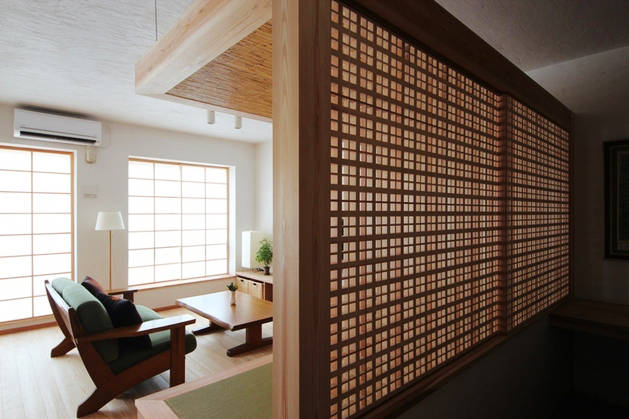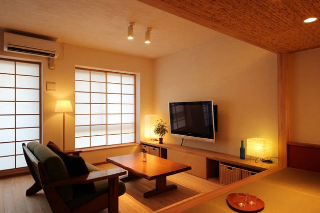 畳小上がりには天蓋を設け、茶室のようなこじんまりした籠れる感じのスペースとしました。すだれロールスクリーンを下せば来客の就寝スペースとなります。