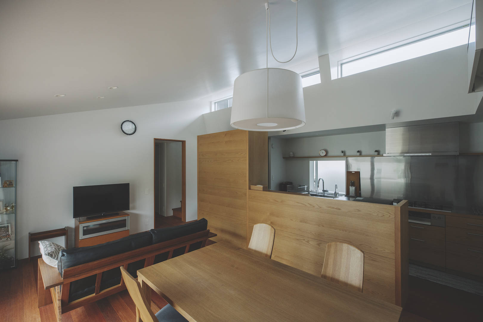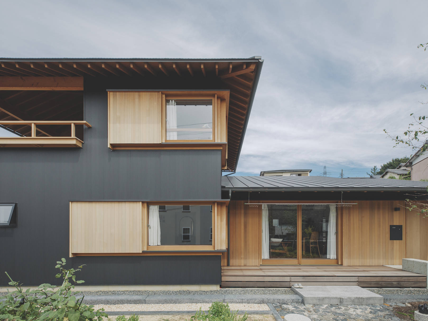 もともと週末に家庭菜園を楽しまれていたこともあり、引き続き家庭菜園を楽しむスペースのある庭を希望されていたので、リビングと庭を緩やかに繋ぐためウッドデッキと深い軒を設けた。