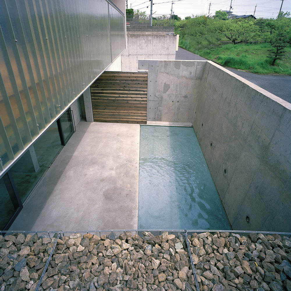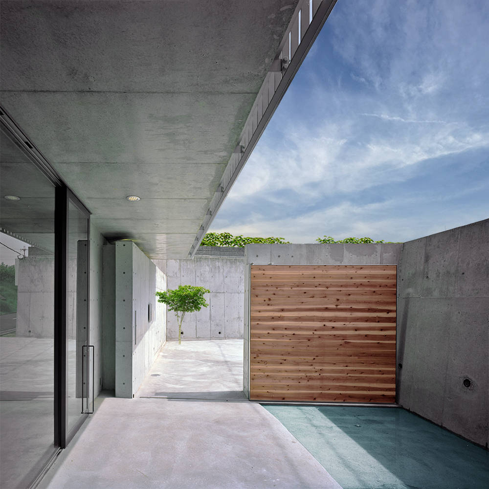 本来なら、擁壁で作られた造成地の上に建物を建てます。しかし、少し視点を変えて見ることで、埋もれたままの場所にも思いがけない空間ができることをこの建物が実証しました。地下室はコンクリート造、1・2階は木造という混構造。まず、擁壁の中の土の半分を掻き出し、コンクリート造の地下室工事を施工しました。コンクリートの擁壁はそのまま外壁として活用。