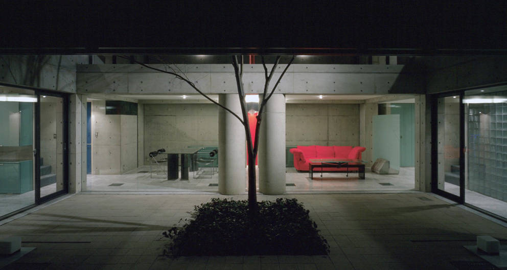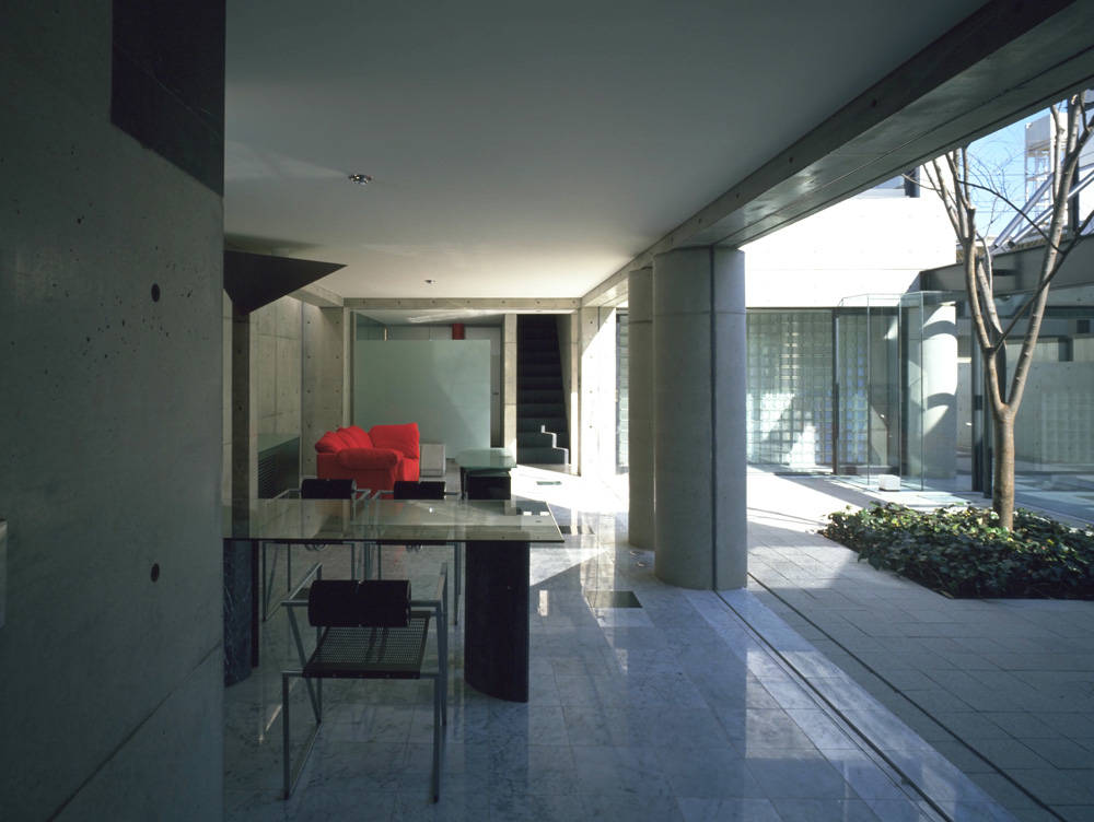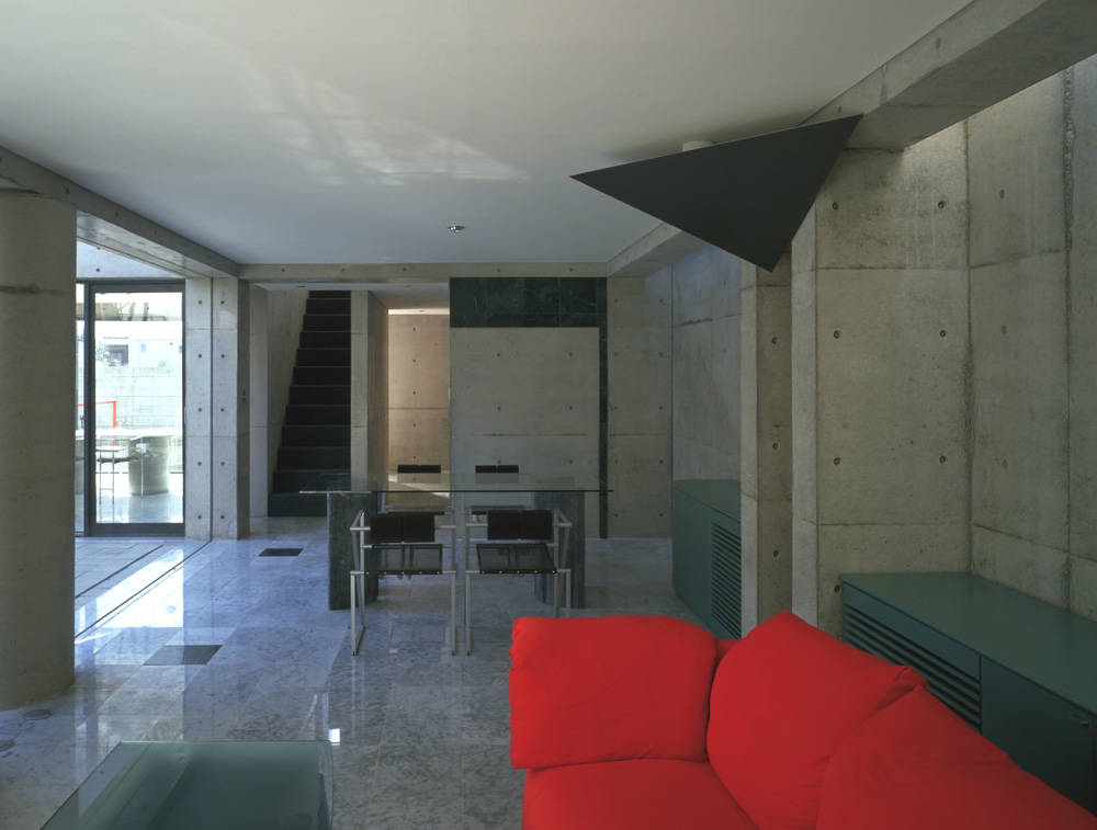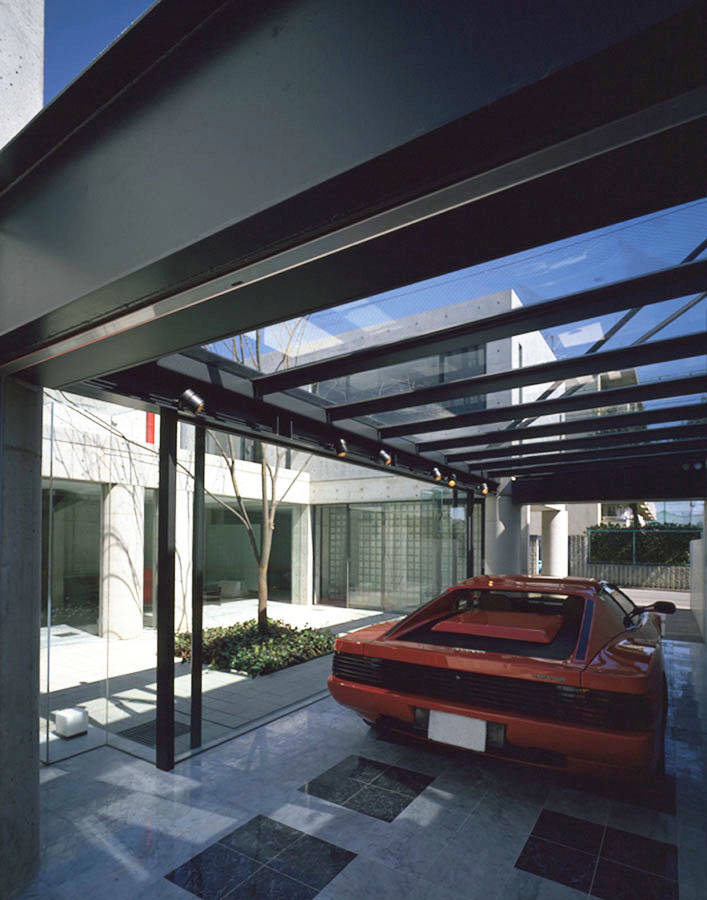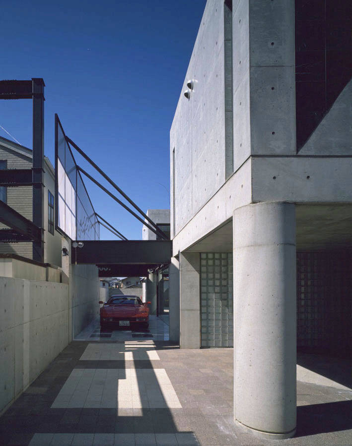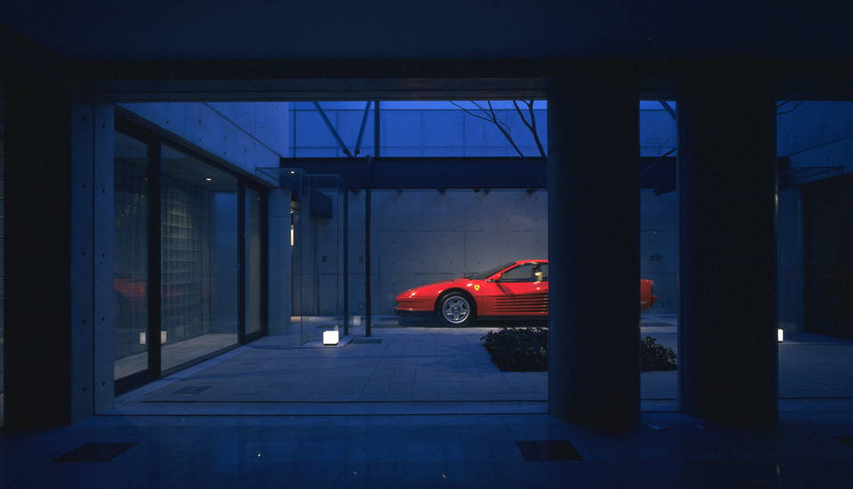 東京の閑静な住宅地に計画された、この住宅は<人>と<車>と<家>の新しい関わり合いを新しい視点で提案した、『カーマニアのための住宅』です。これまで家の片隅に追いやられていた愛車を家族の一員として家の中に迎え入れ、車と語り合える明るく快適な空間を用意しました。内外装は、コンクリート打放し仕上とし、美しいフォルムのフェラーリとの響きをデザインのテーマとしています。