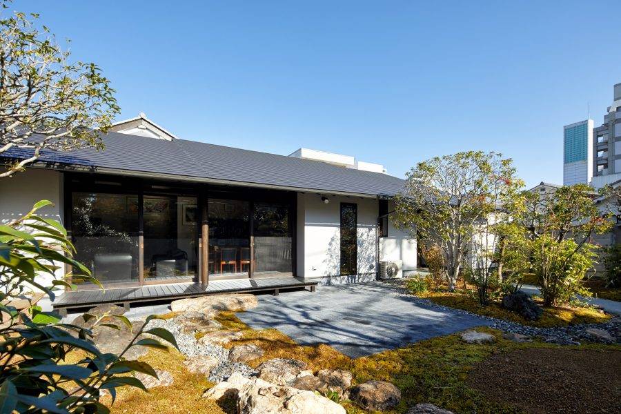 イナカではありませんが、余裕のある敷地には以前からの和風庭園があり、町中にありながらも「和」を感じる静かな佇まいをつくっています。
