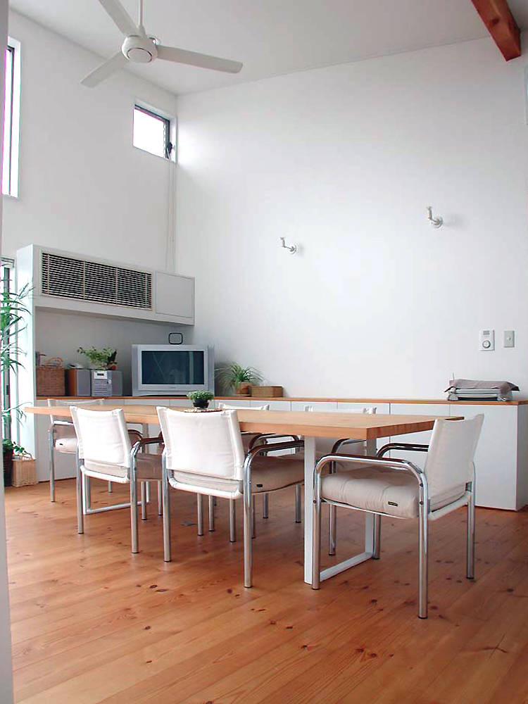 ライトコートや目隠し壁を用いて、密集地でも明るく風通しの良い快適な家になっています。