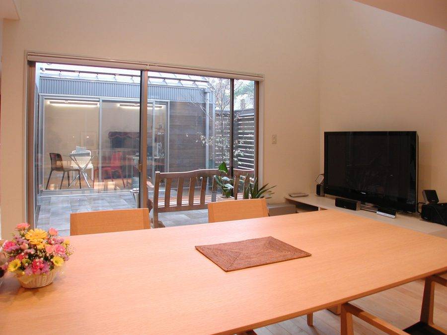 まちなかの住宅密集地でも、中庭を部屋で囲めばプライバシーを守ることができます。中庭に面して大きな窓やテラス戸を設けることで、お隣や道路からの視線を気にすることなく、採光と通風を確保できます。