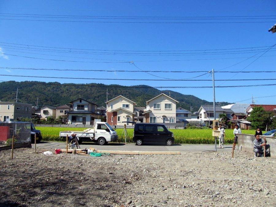 南側は大きな桜の木がある小さな児童公園に面していて、遠くになだらかな山並みが見える60坪ほどの敷地です。