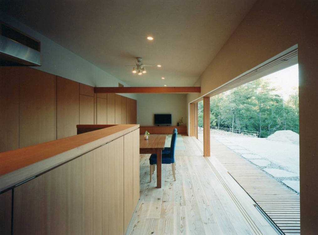 その恵まれた自然に対し、テラスの窓をすべて開け放てるようにし、ハレの日にはリビング・ダイニング・南庭を一体として使う事が出来ます。