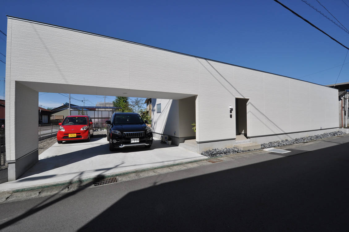 シンプルな外観ですが必要なところには庇を設け夏の日差しや雨に対処します。