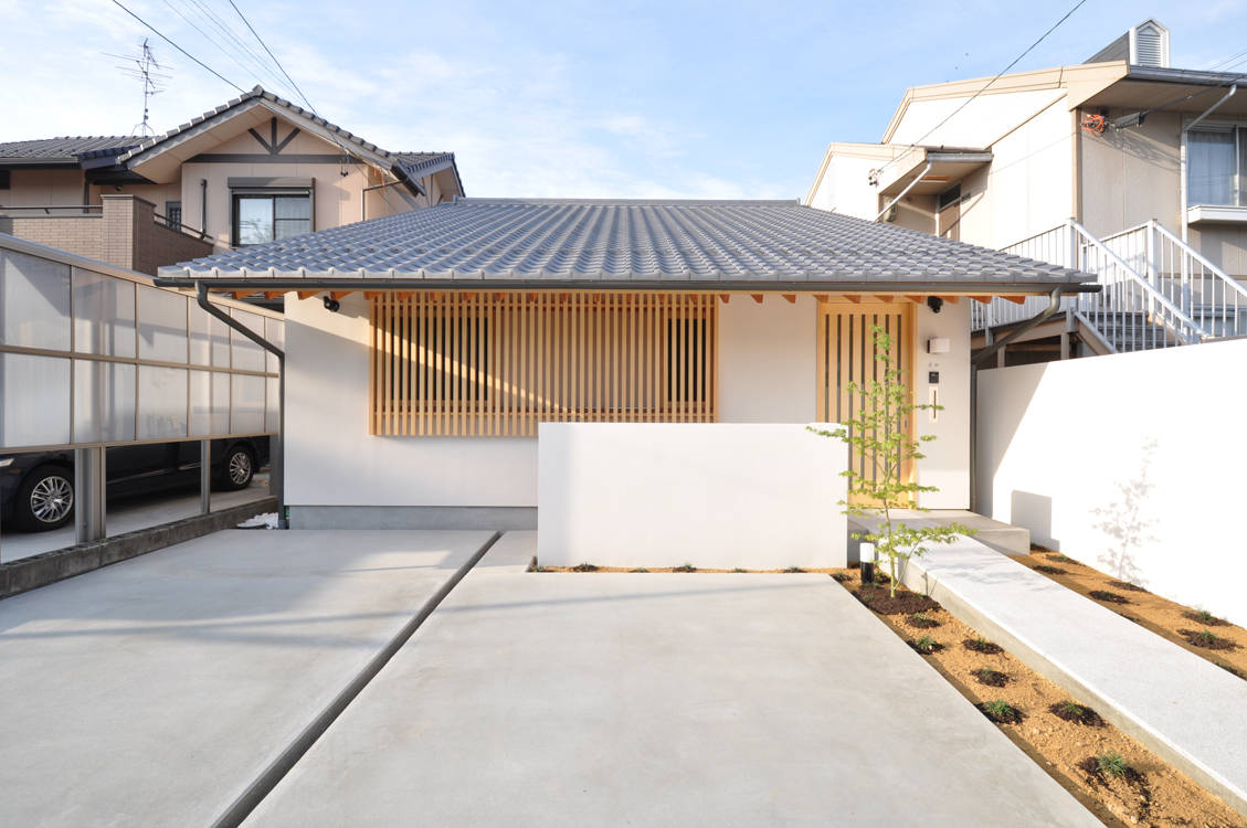 瓦屋根を低く抑え、2階建てですが平屋のようなプロポーションとしました。