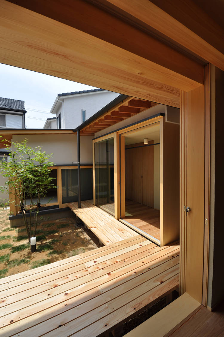 リビングからの眺めを気持ち良いものとするために、和室を離れ的な位置に配置し、自分の家から中庭を通して自分の家が見えるようにしました。