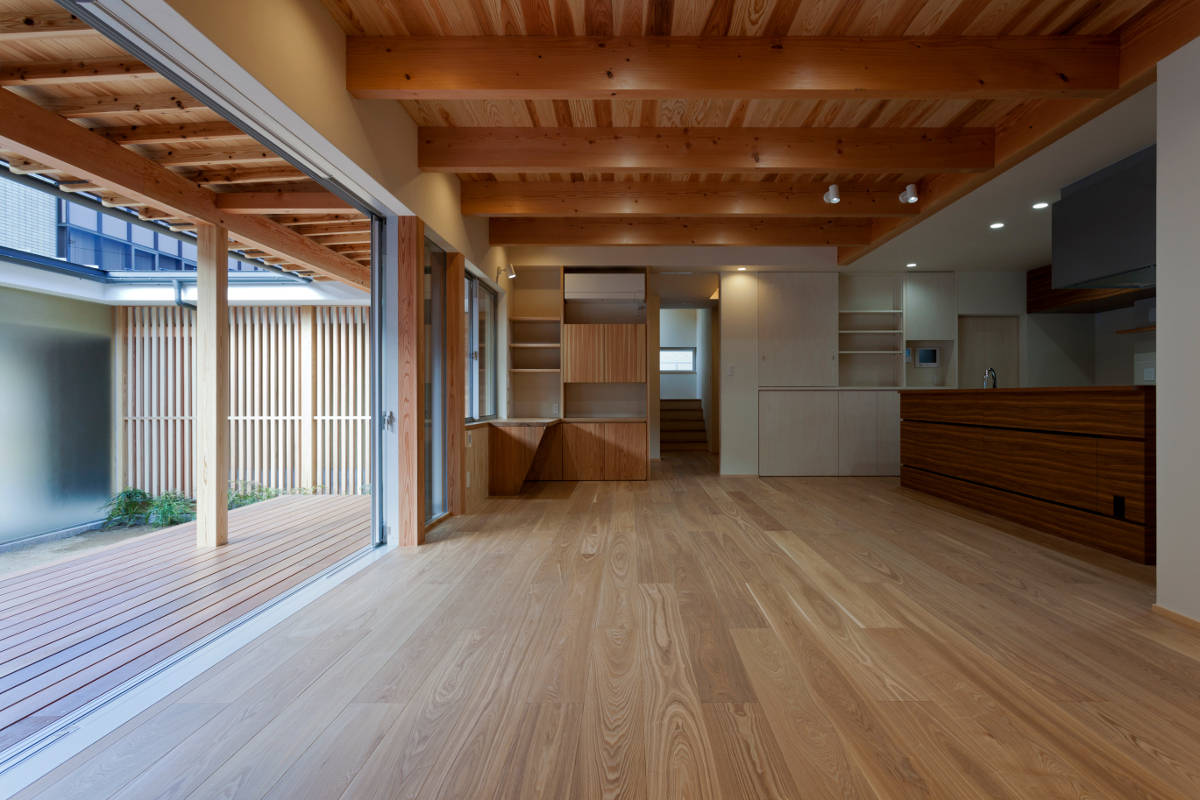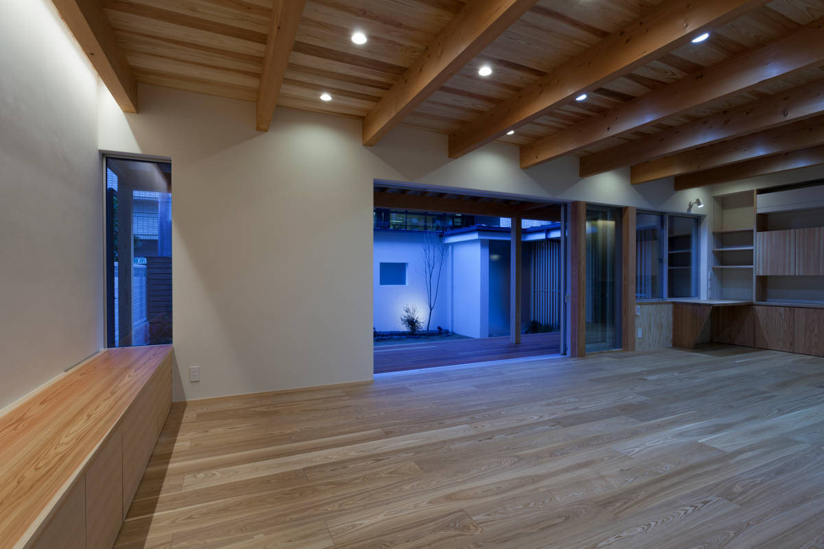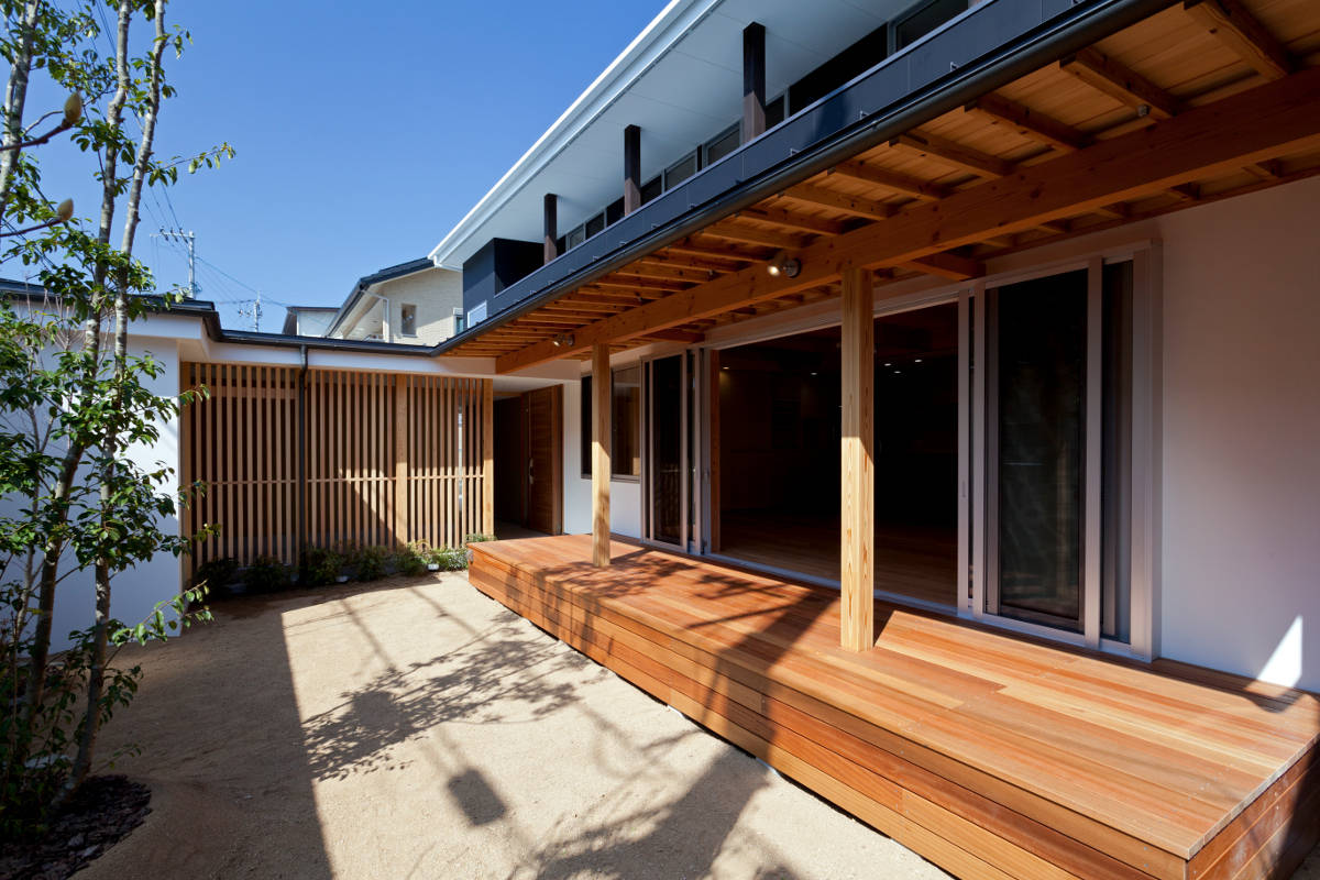 市街地エリアで計画したプライバシーが確保され寛げる空間と陽あたりの良い広い庭が楽しめる住宅。