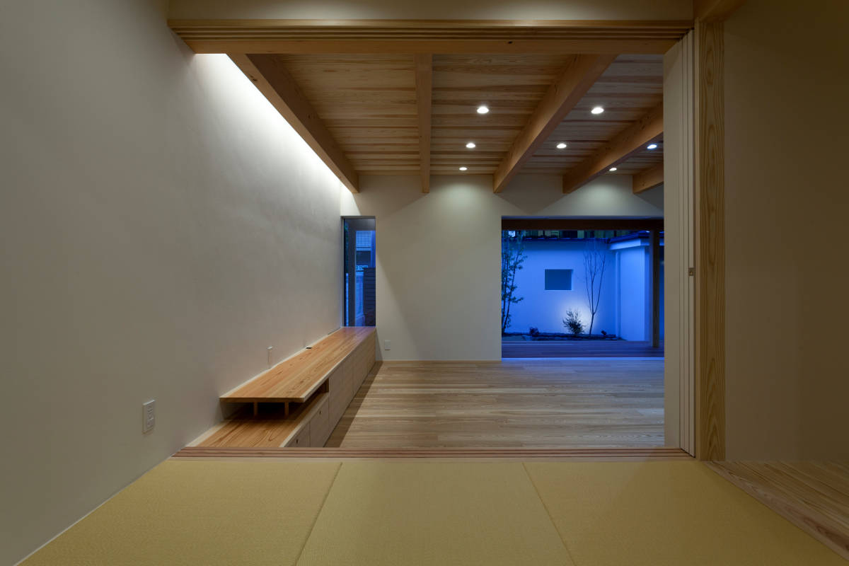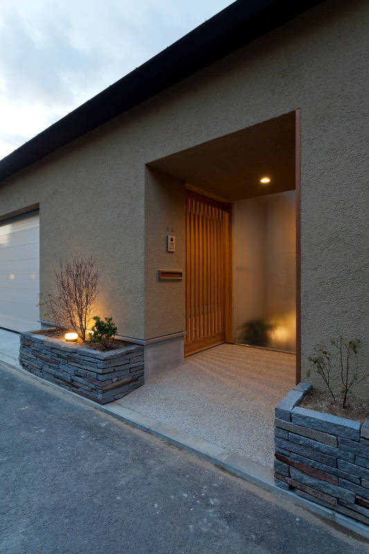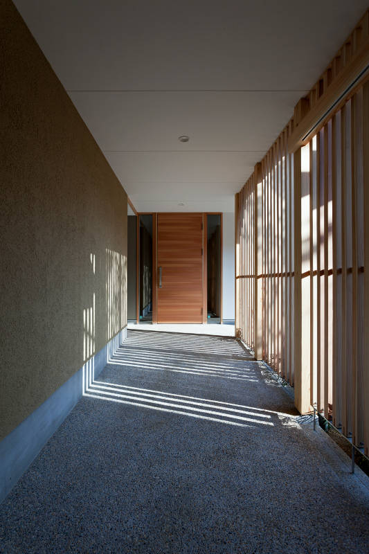 近隣からの視線と太陽角度のシミュレーションから、敷地内を平面及び高さ方向に分割し、条件により整理された建物各部には、条件に見合った高さ、深さ、色合い、素材が的確に与えられ、重心が低く、落着いた印象の佇まいとして計画している。