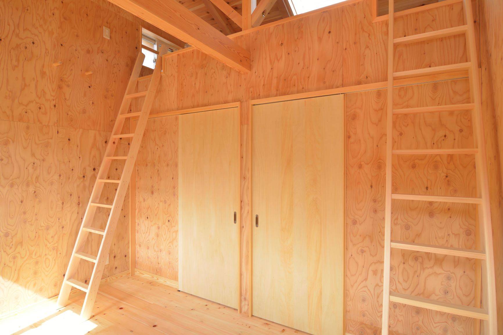 ガレージにはリフトを設置し、さらに隠れ家的なロフトを設けました。趣味の隠れ家ロフトなので入り口は隠されており、こっそりと入れるように作っています。