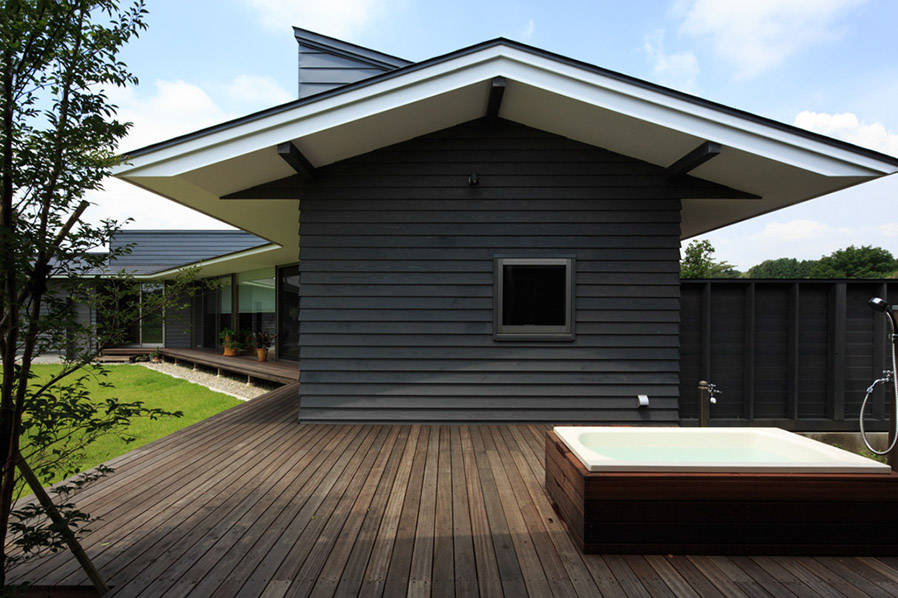 床面積の割には敷地が広く、ただ建てたのでは、ただ家屋が並ぶとりとめのない佇まいになります。