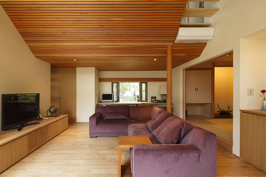 そこで地下入りの玄関にしてSICと階段室、それと将来用のエレベータースペース収納を設けた家です。