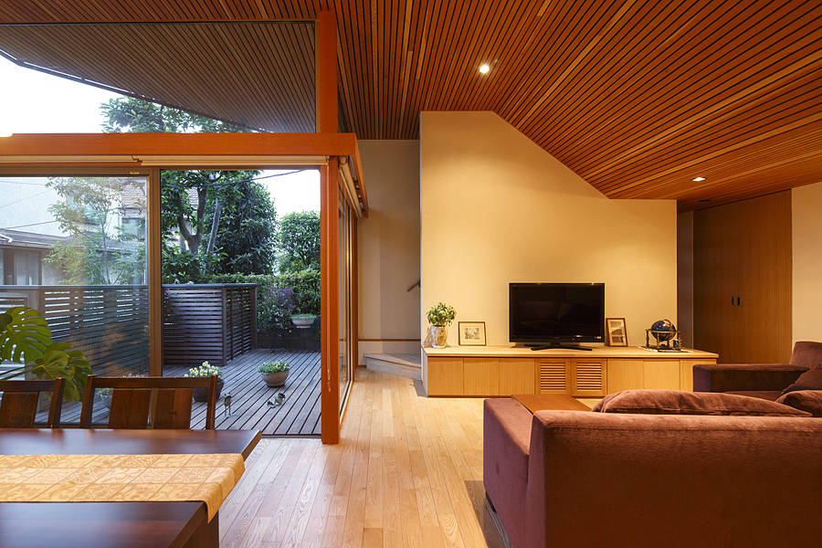 敷地が道路より2m程高くなっていて、そこは外階段で上るためバリアフリーにはできません。