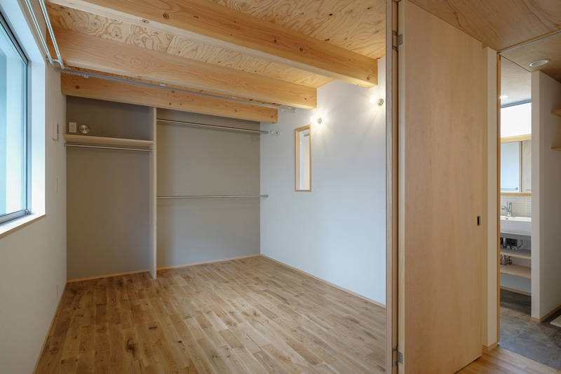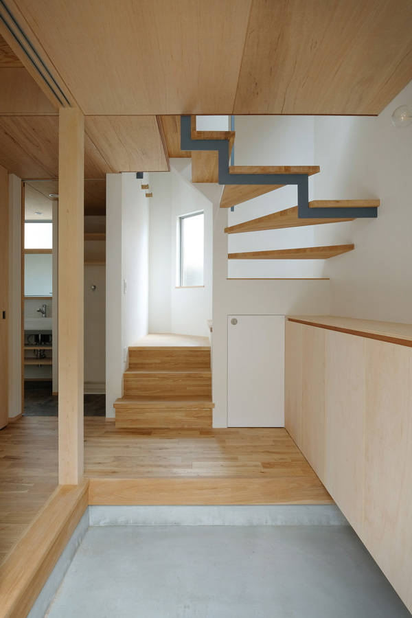 1階は土間のような大きめの玄関と寝室+コンパクトな水回り、2階は一室空間のリビングダイニング、吹き抜けを介してつながる3階部分は天井の低い屋根浦部屋のようなスペースという構成だ。