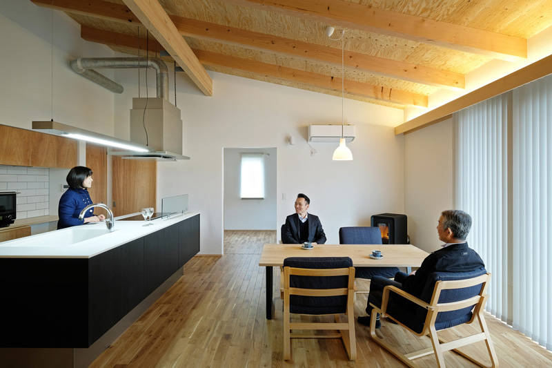 南に開きストーブのある大きなリビングダイニングとオープンなキッチンスペース、広くゆったりとした水回りの空間、書斎を兼ねた寝室、2つの子供室、猫への対応や家相への配慮など要望は山盛りであった。