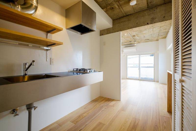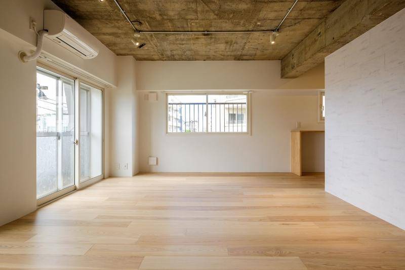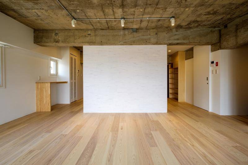 様々なマンションの多様なプランタイプに合わせて、Wall、Box、Wrap、Floatという4つのプロトタイプでリノベーションを行うReismプロジェクト。今回は、比較的四角いプランのあえて真ん中に水廻り機能を集約した箱を中心において、回遊性を演出したBOXタイプでデザインを行った。素材感は以前のタイプよりもホワイトで洗練されたテクスチャーでまとめている。