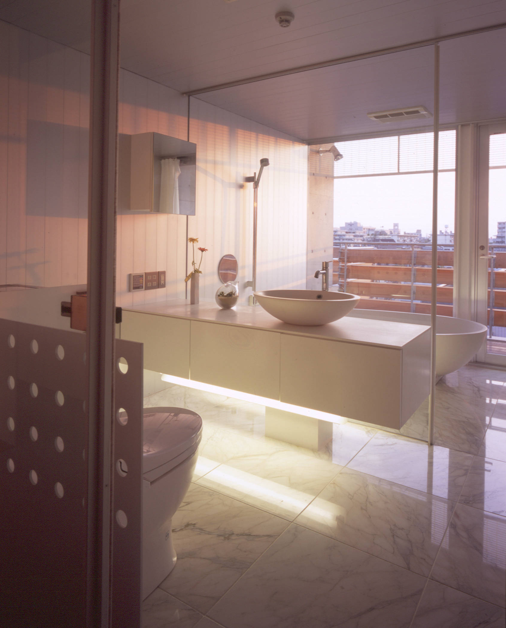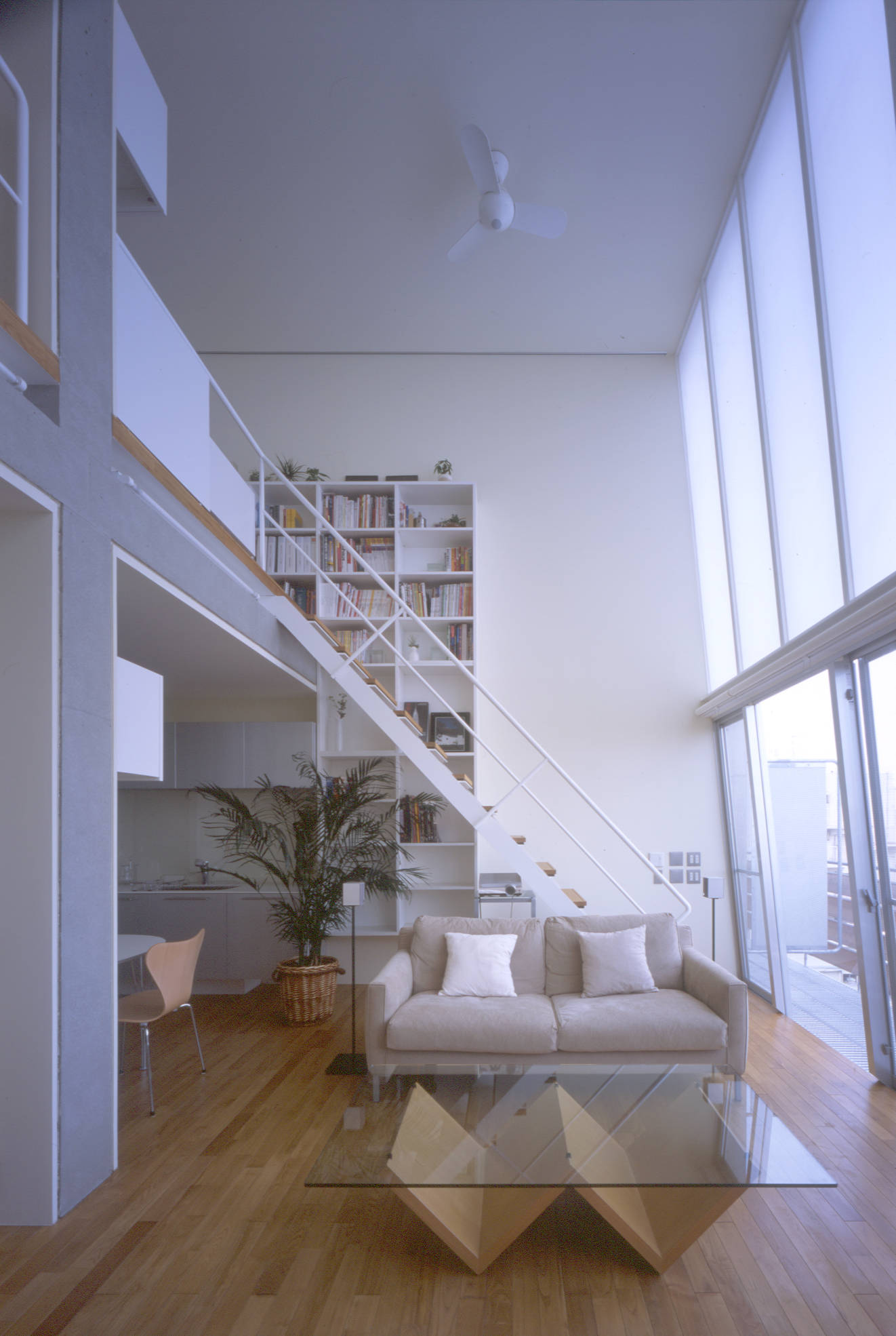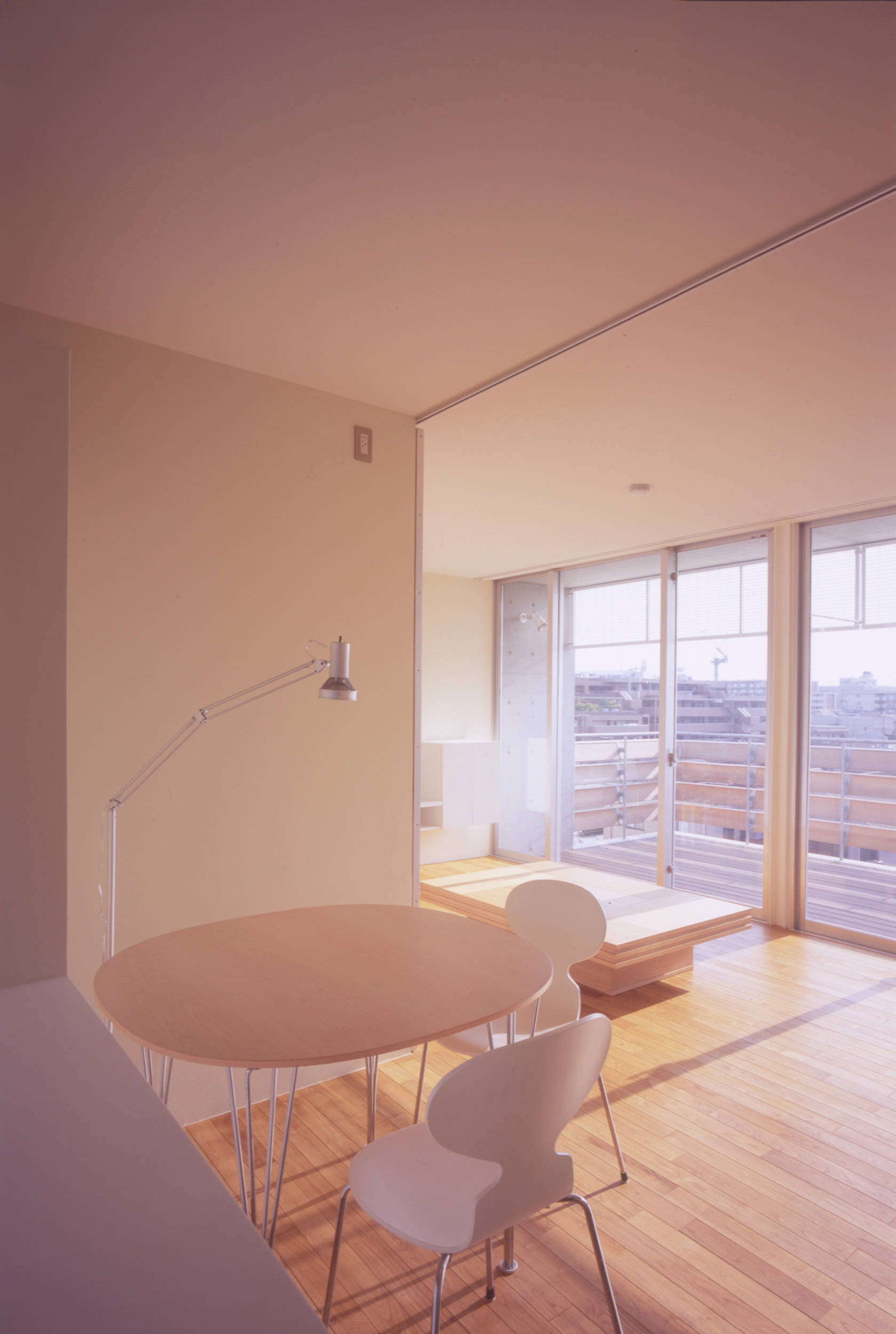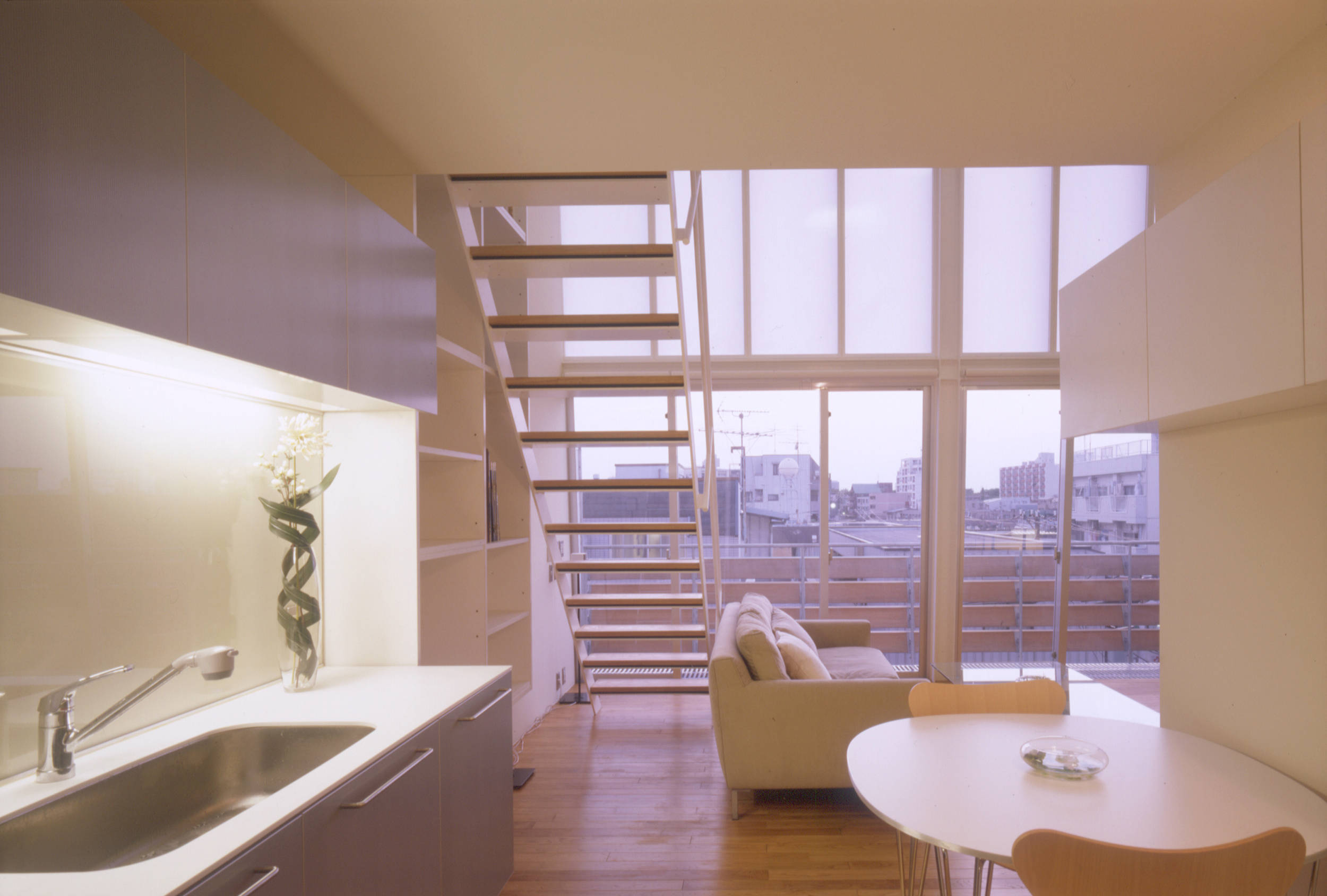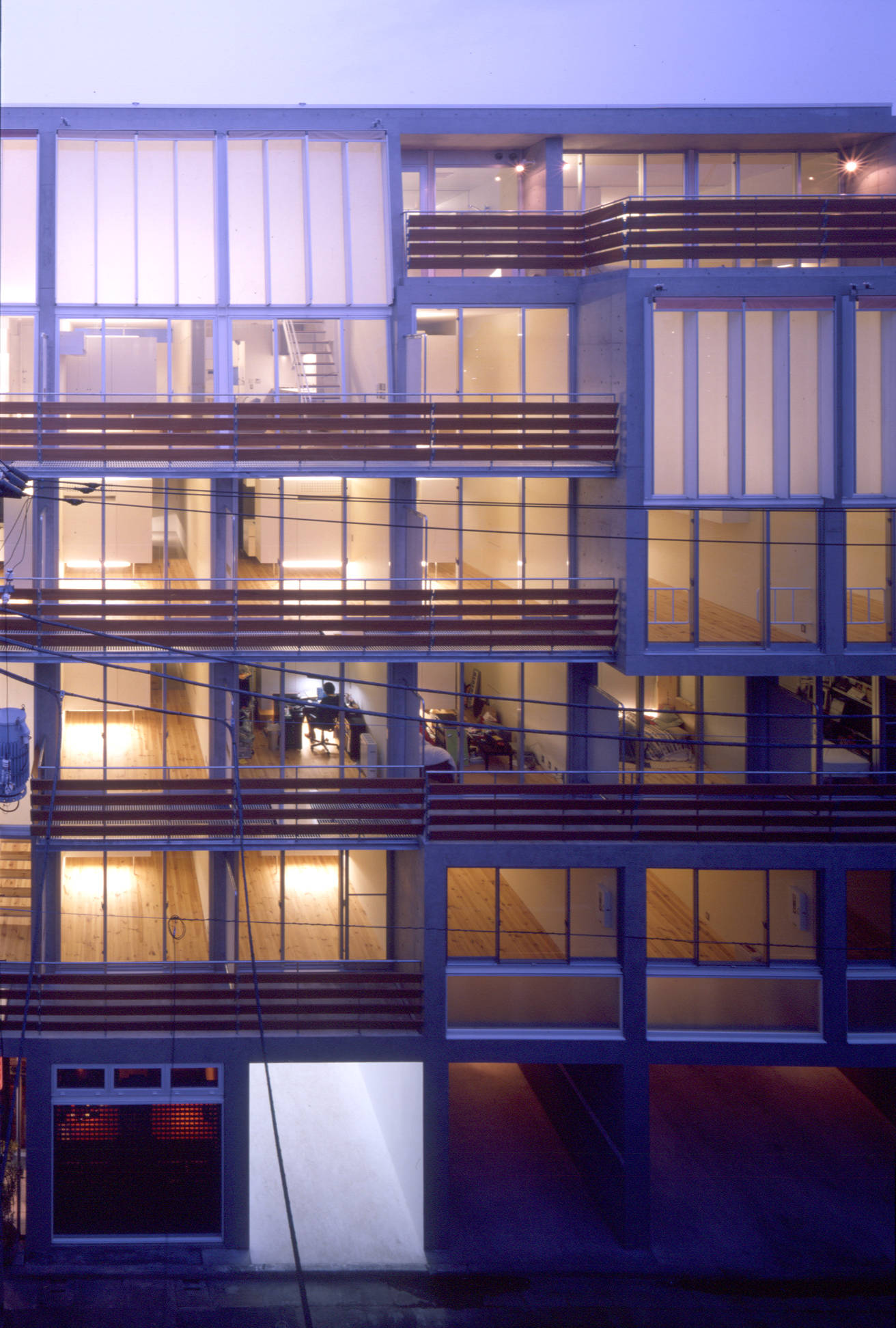 自由に組合わせた住戸群は、住人の生活を豊かにすることはもちろん、その豊かさは端的に建築のファサードに現れ、街(都市)に表情をつくります。またいくつかの住戸は、前面道路いっぱいに張出させ、色とりどりの外付けスクリーンをつけました。混在しているメゾネットタイプの住戸は、内部では2層分のダイナミックな吹抜けを内包し、同時に街にダイナミズムを与えます。