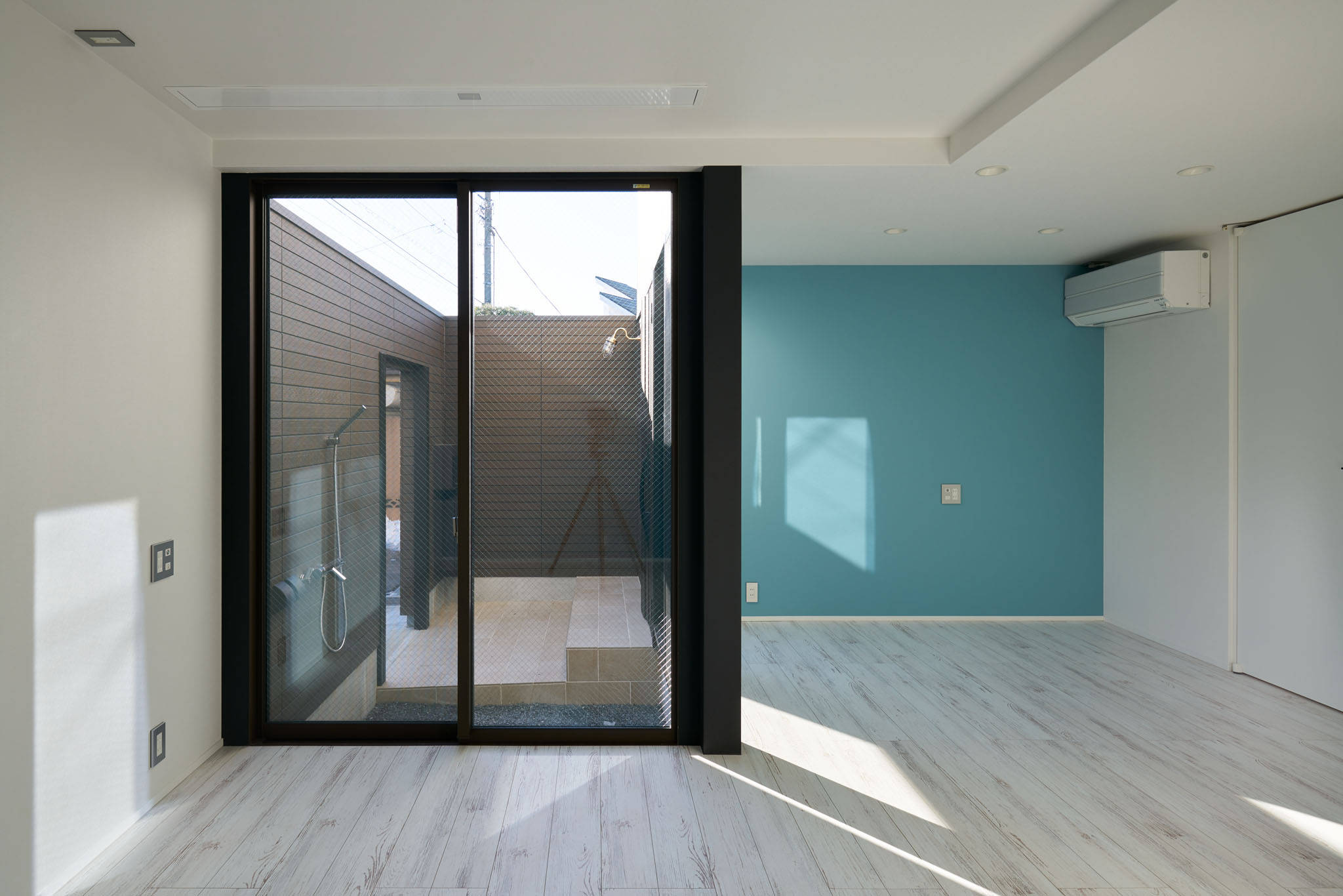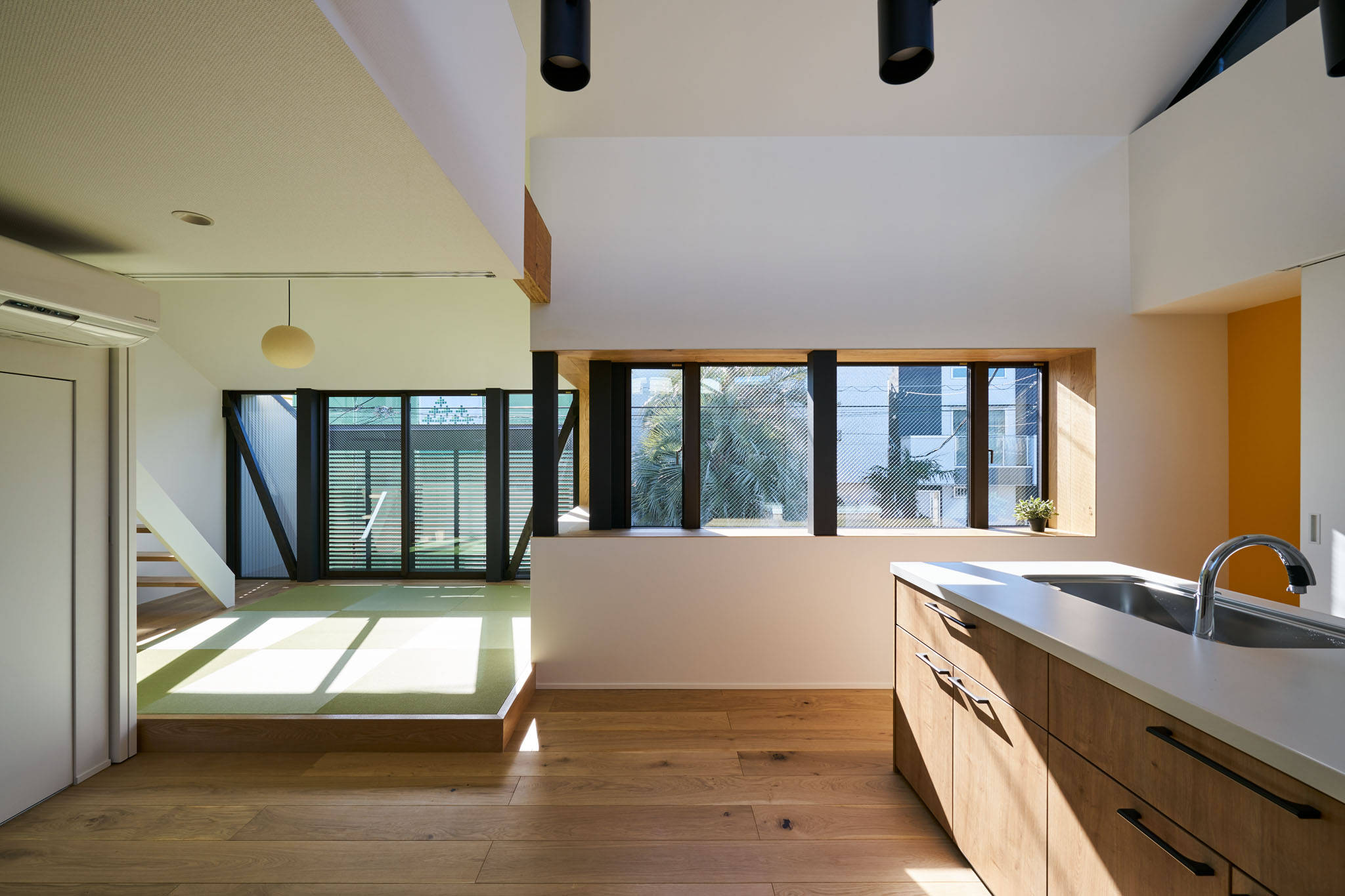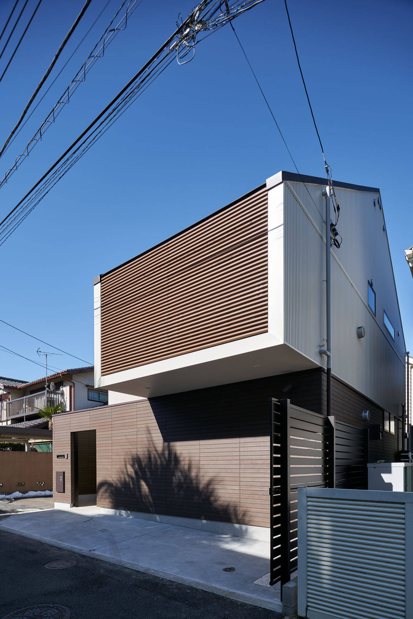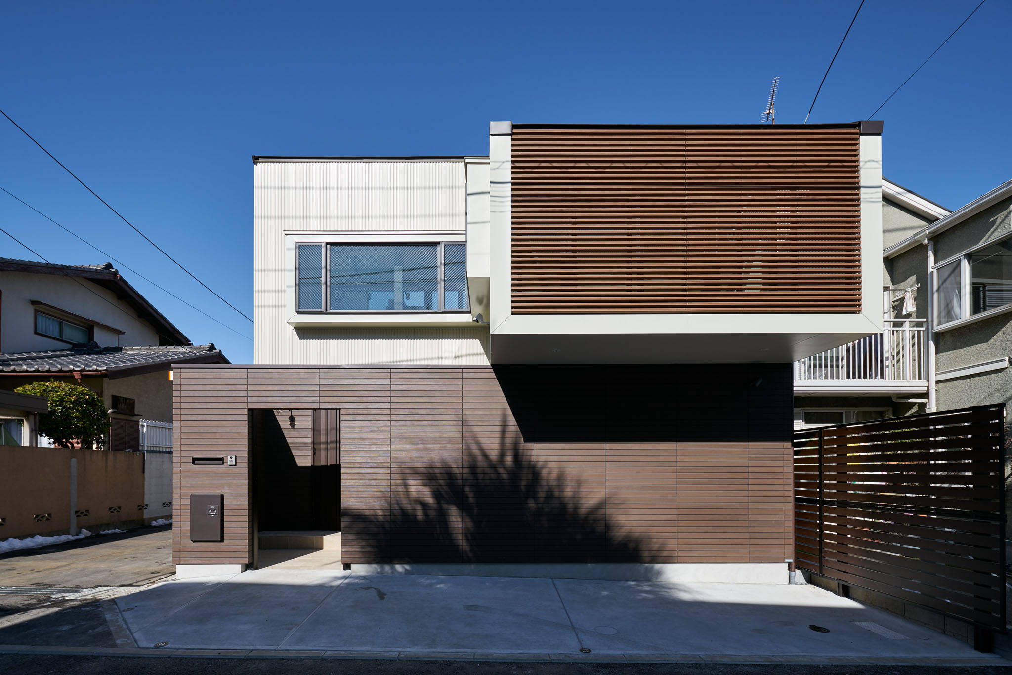 住宅街の大きいスケールのずれから自然をとりいれつつ、建物内の小さいずれを機能的に使いきった住宅です。