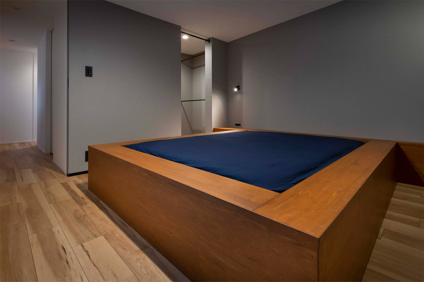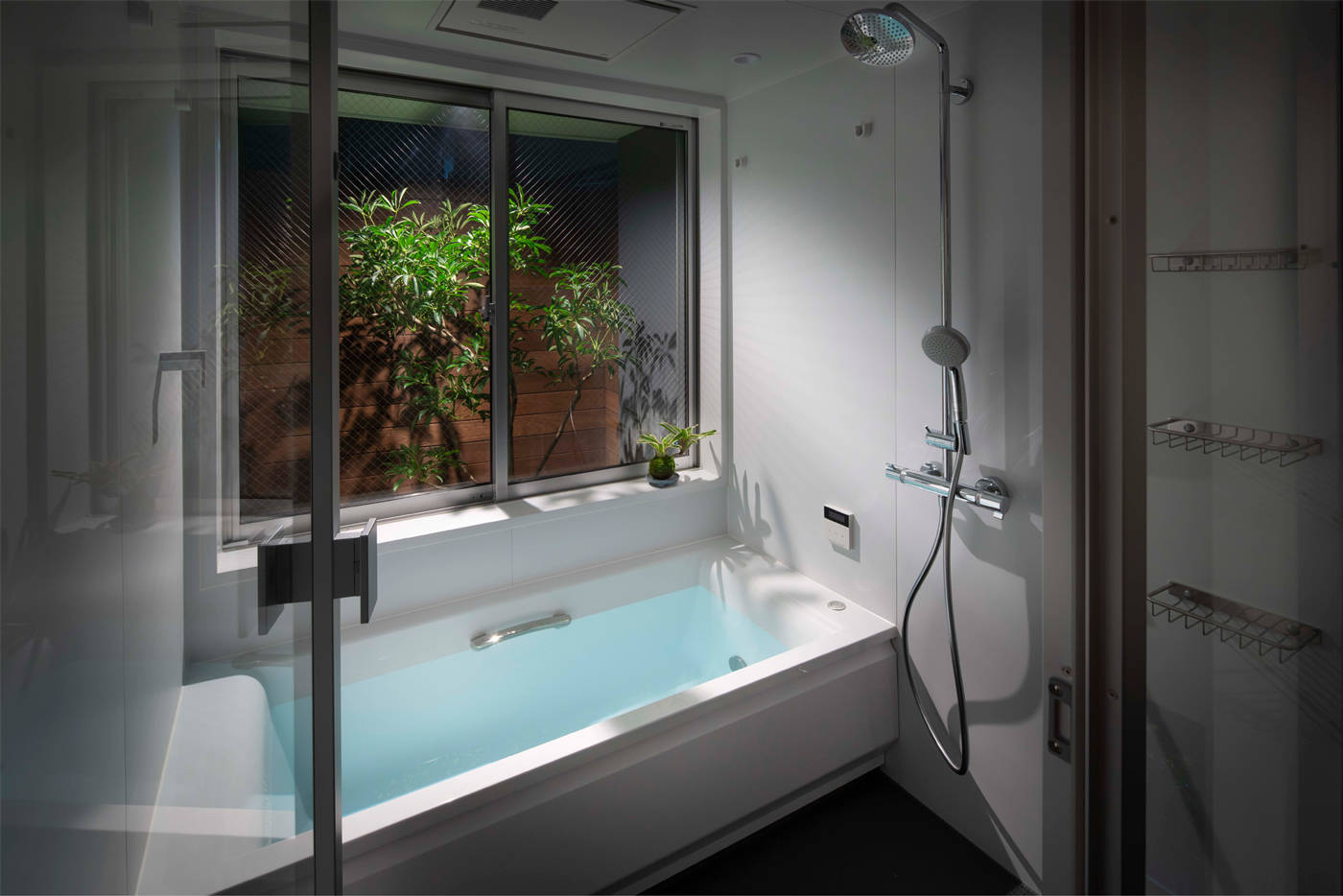 ポーチから続く、玄関そして洗面室までを通り土間のような設えとして、バイクルームを含む1階のアクティビティに対応した。また地窓を多く設けて半屋外的な空間となるように意図した。明るく開放感のあるリビングダイニング空間の確保という課題に対して、3階にLDKをプランニングし天井高を3.4m確保することで実現することとした。1階フロアレベルを道路レベルに近づけるとともに階高を抑えることで3階リビングまでの距離感を縮め、ディスポーザーを設置しゴミ出し回数を削減するなど3階LDKのデメリットを最小化するように努めた。