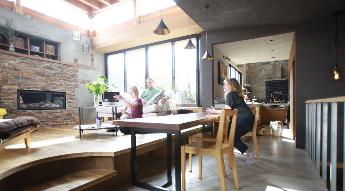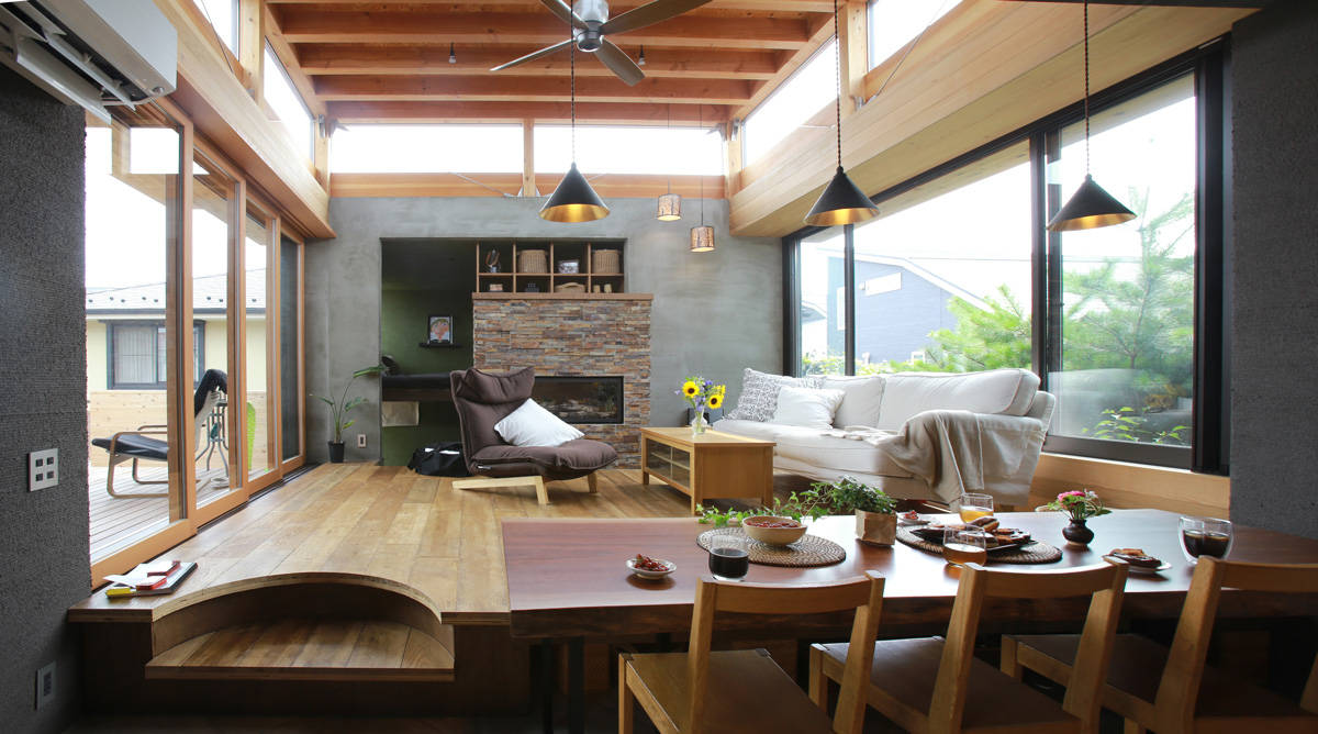 マシューズさん御家族の中にある、ふるさとの原風景や素材や暮らしのイメージ、それと日本的な体験や素材とが、1つの家の中でミックスされてできたようなお家です。