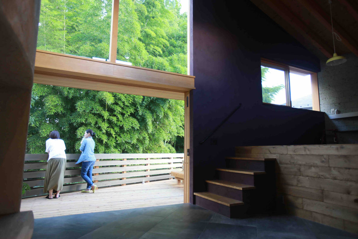 周囲の視線から暮らしを守りながら、竹林の公園に面しているロケーションを生かすように計画しています。