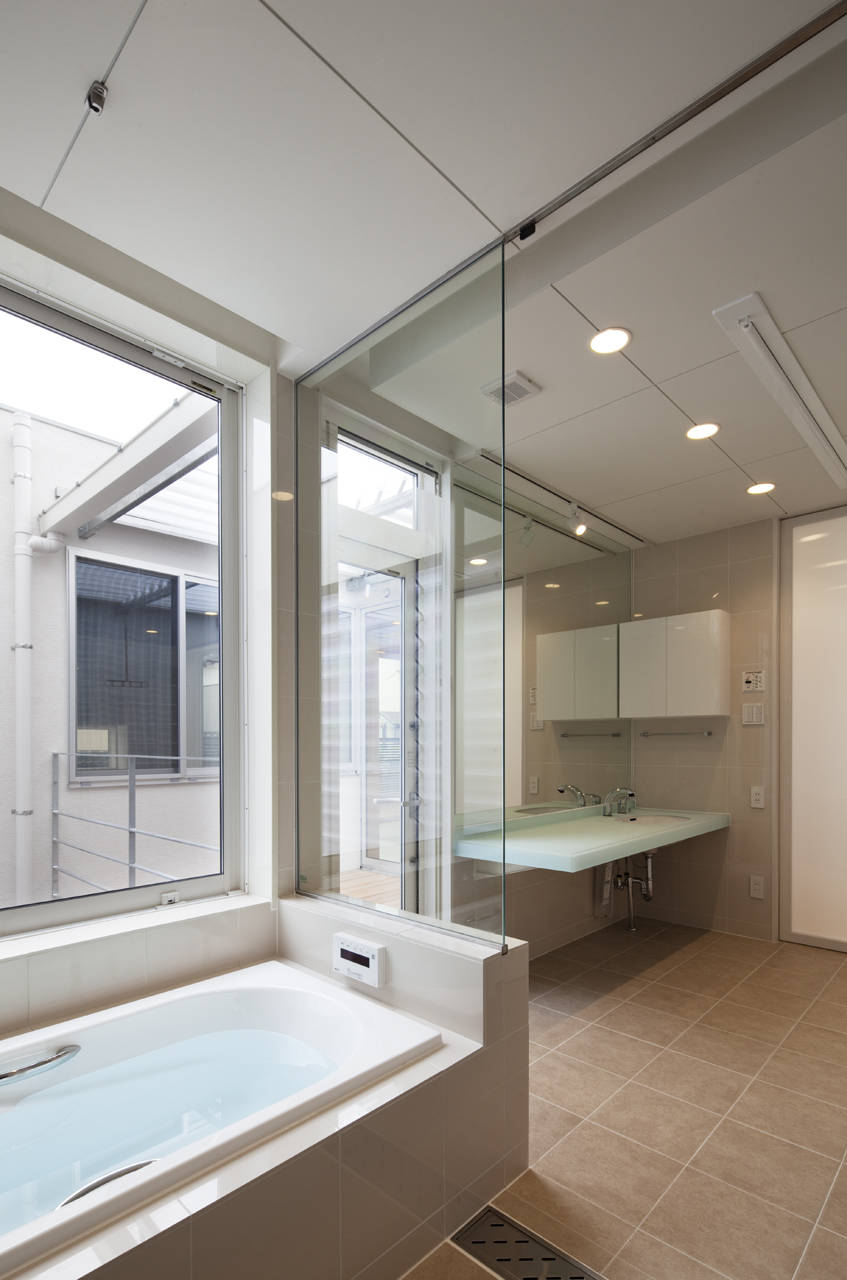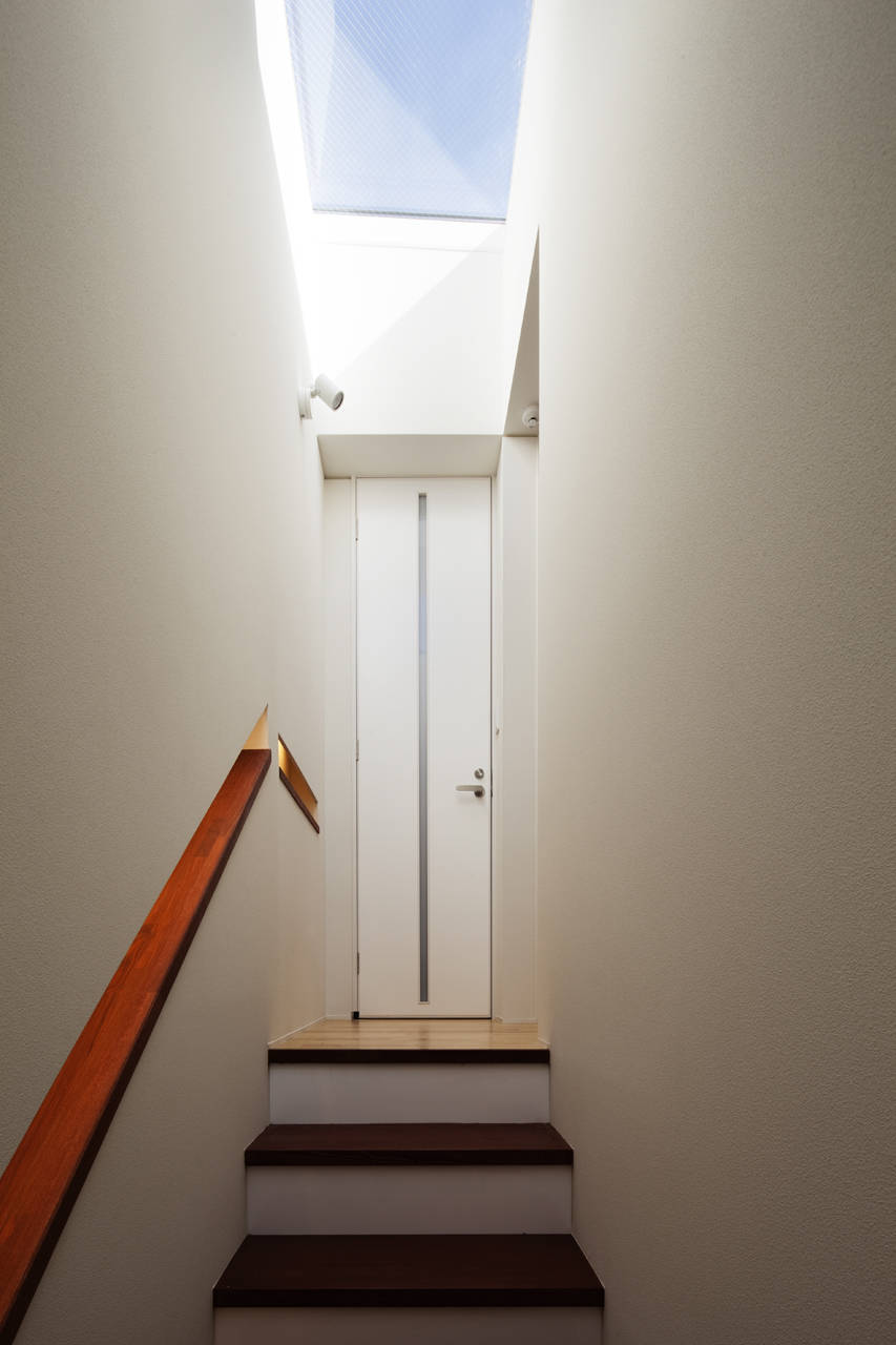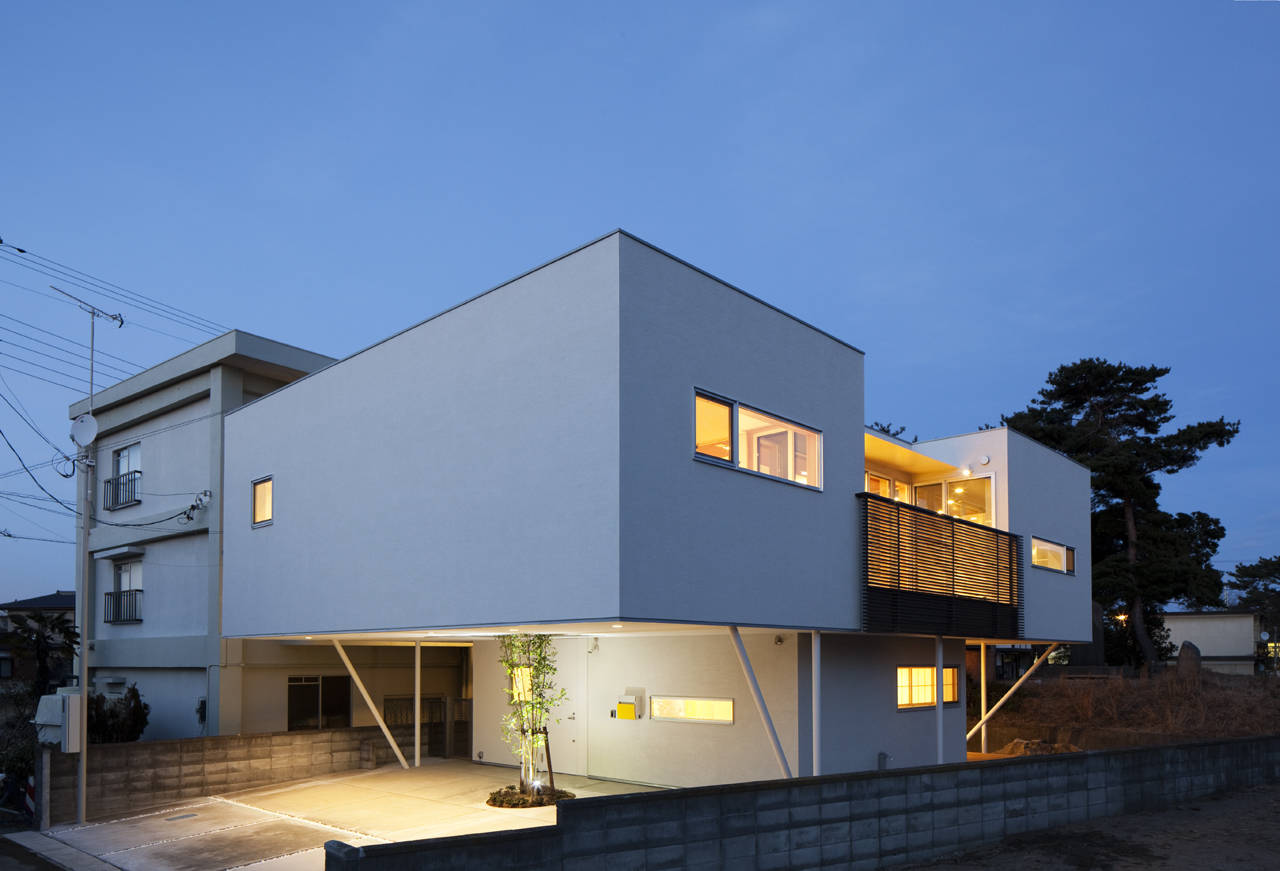2階で一日中生活可能な構成とし、1階はゲストルームゾーンとガレージ4台分を確保しました。