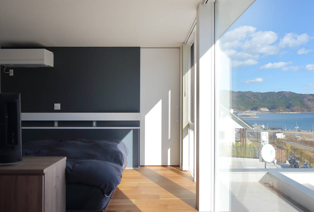 新築建物が散在する中、新しい住宅街としての方向性も見出せない状況のもと、海への絶景が設計の手掛かりとなった。
