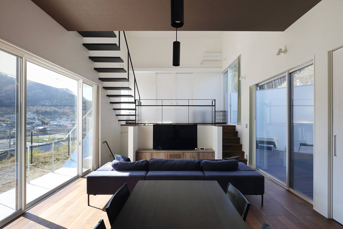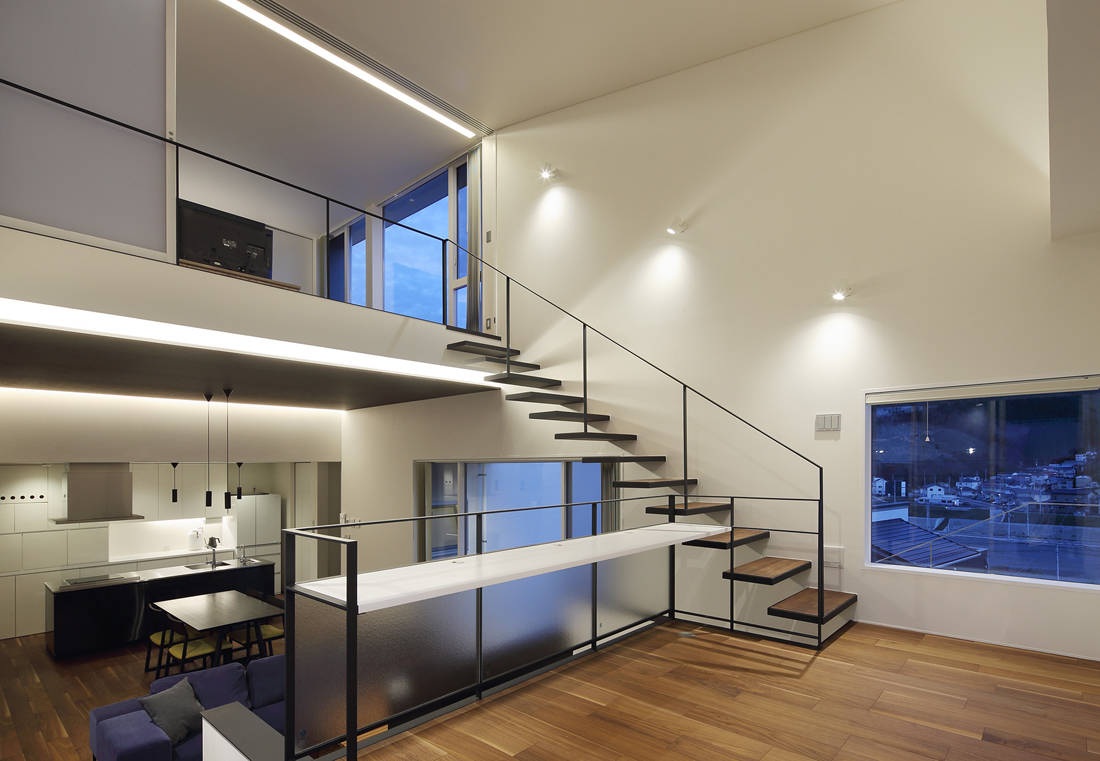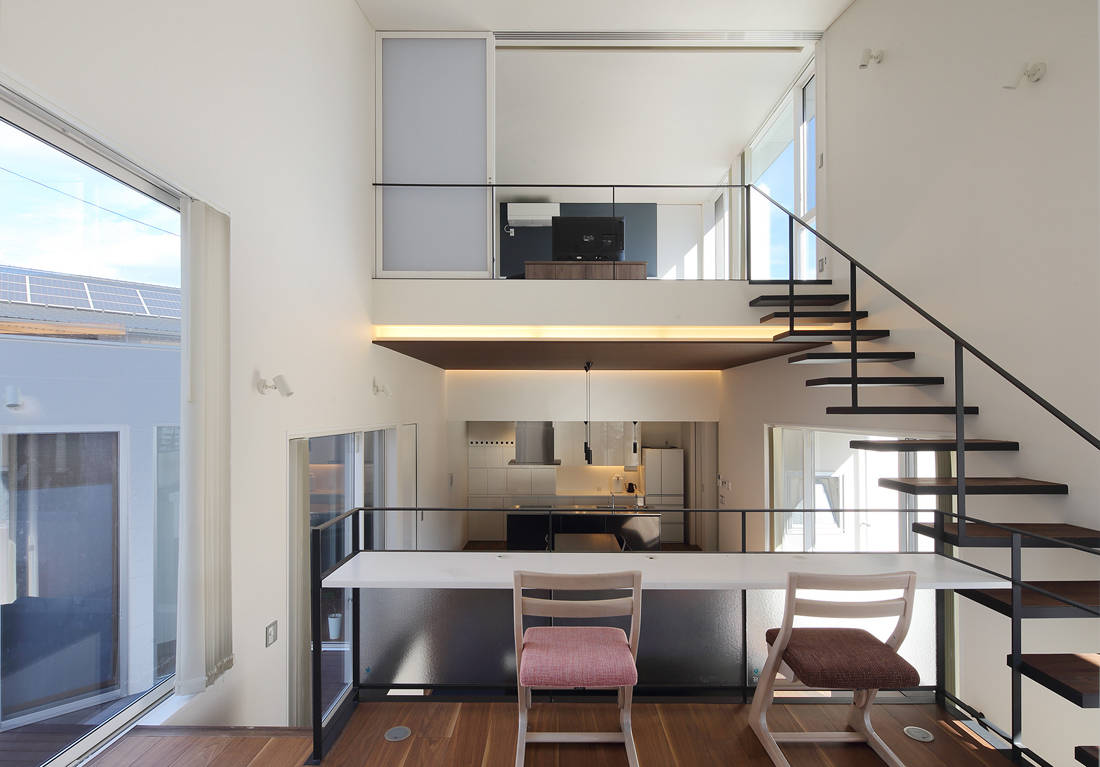 建物の構成は、半地下のあるスキップフロア形式として視線の通りを最適化した。