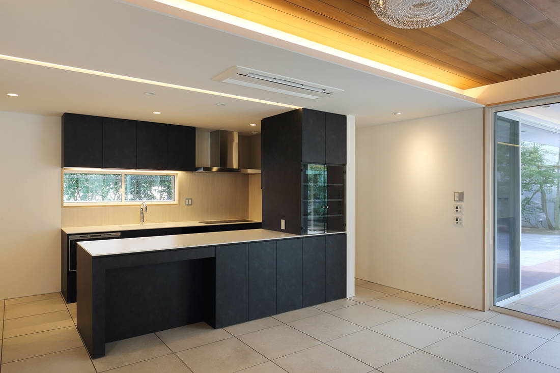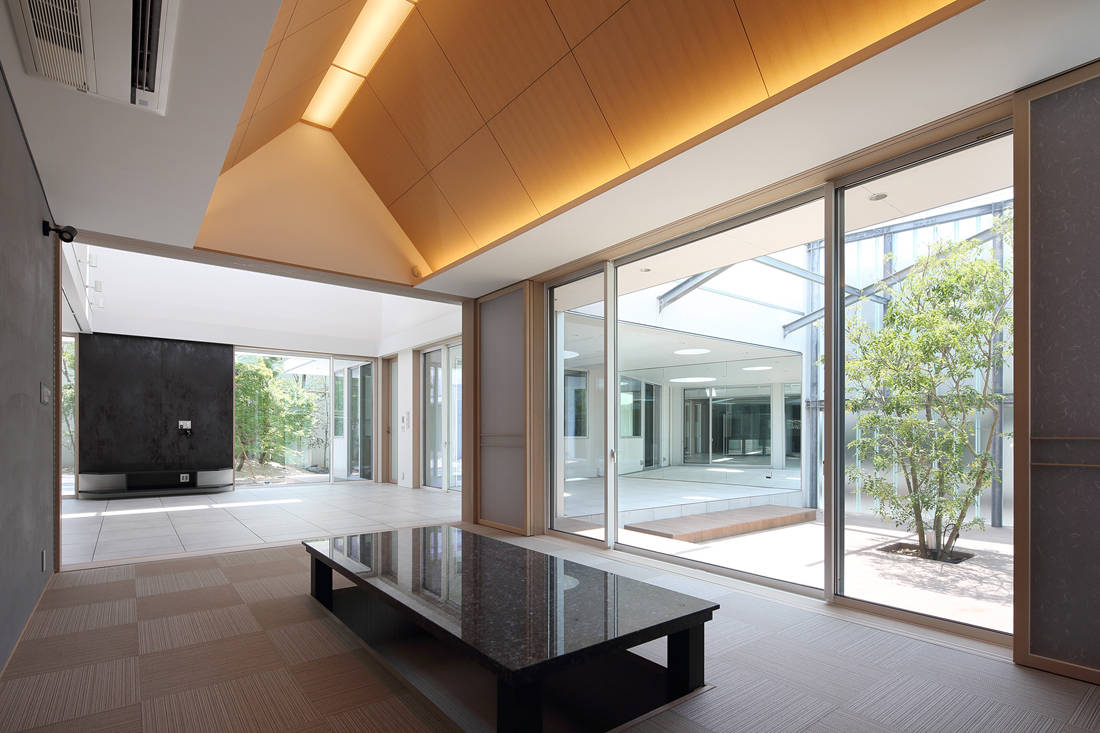 広い敷地を活かすために何が必要かを検証し、外部との接する空間を随所に配置するとともに中間領域により解放感を感じられる構成とした。