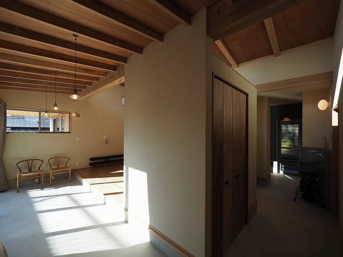 子育てが終わった夫婦二人の時間を、自然豊かな場所で、趣味を楽しみながら暮らしたいと願う施主さんの、小さな平屋建て住宅です。