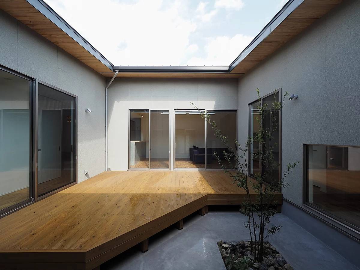 田畑が広がる地域に近年宅地化が進んで来ている周辺環境で、隣家からのプライバシーを守れるロの字型のコートハウスをご希望されました。