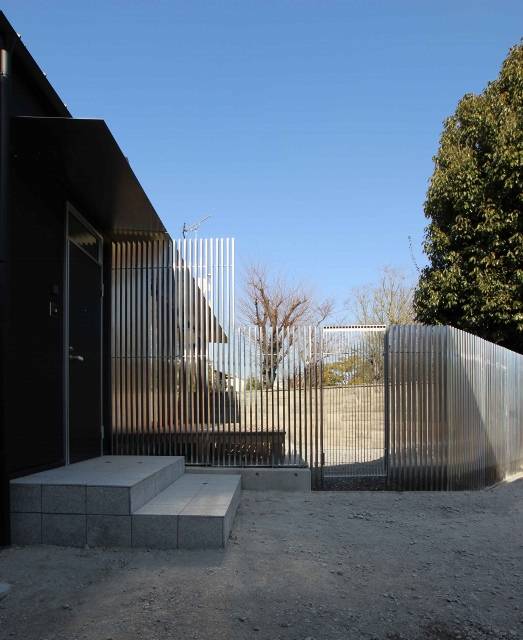 敷地の東側は大きな公園で、陽当り・風通し・眺望が期待できる、とても良い立地です。 東側の敷地境界線に対して平面的に建物を45度傾け、残った空間をスチールの目隠し格子で囲って中庭を作りました。