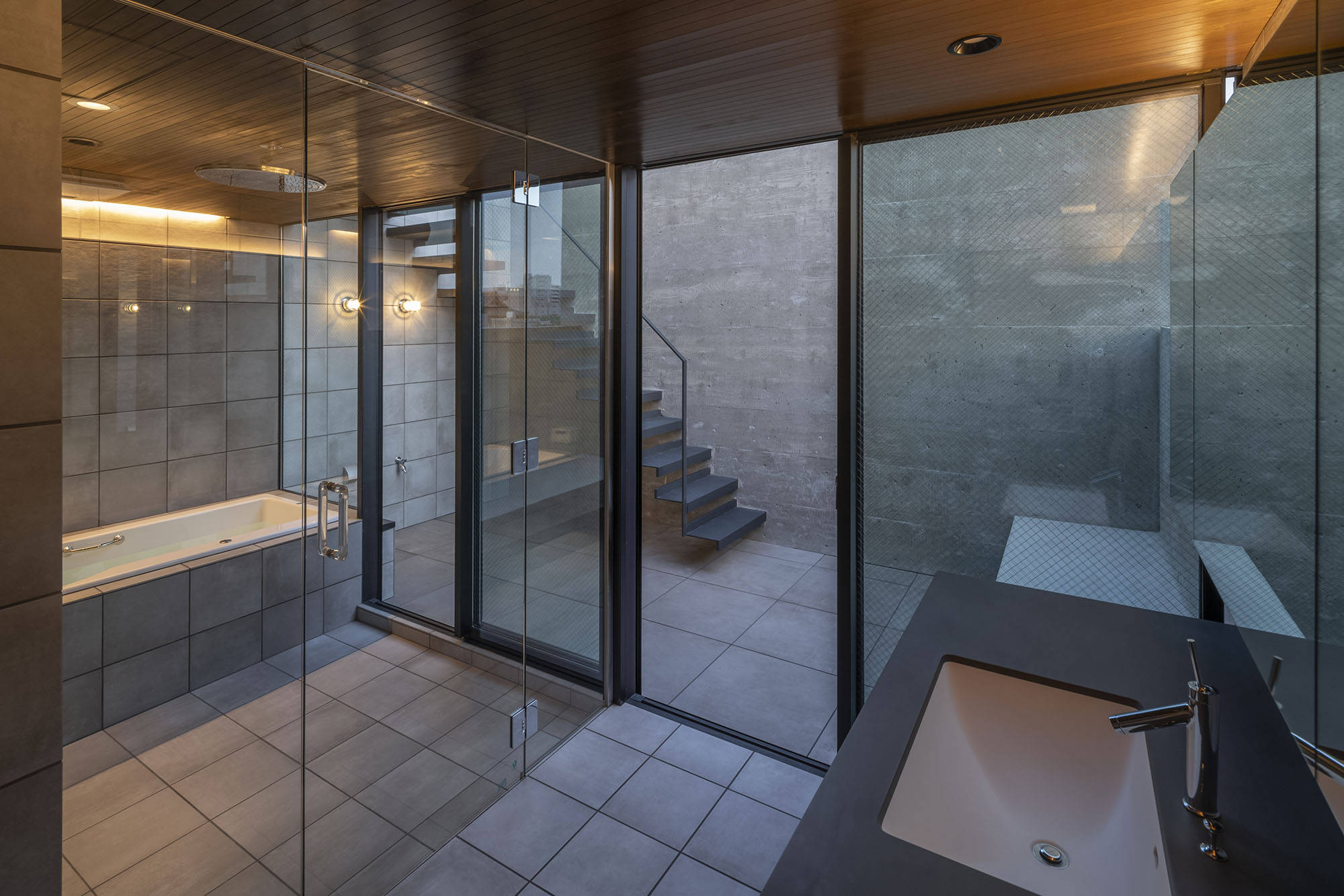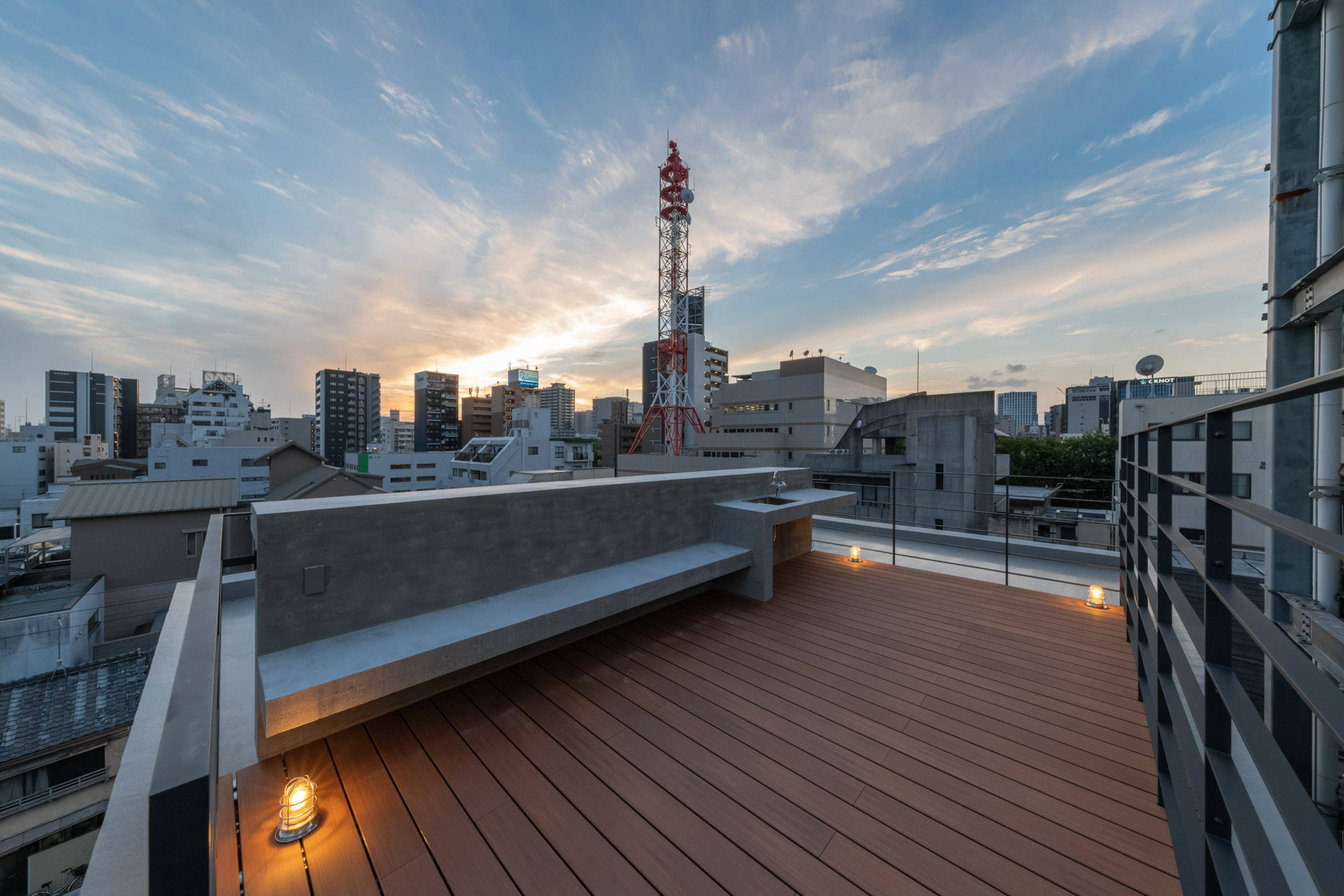 最大限の内部空間を確保するため、都市部特有の外部階段や雑居ビルなどに見られる階段室兼エレベーターホールの構成を踏襲した。