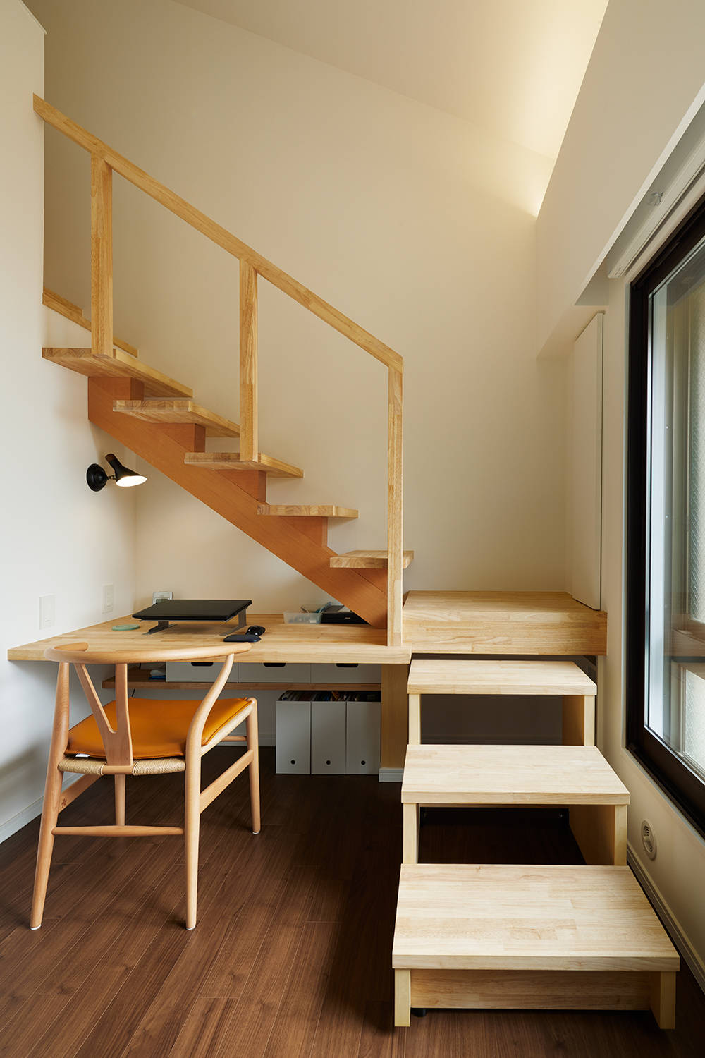 コンクリート躯体の天井がとても高い区画だったので、規約に沿う形でロフトを増築しました。