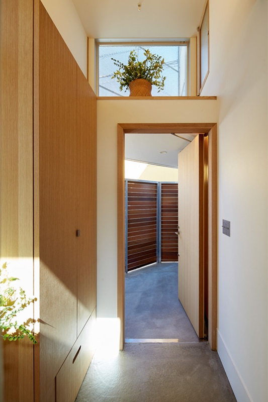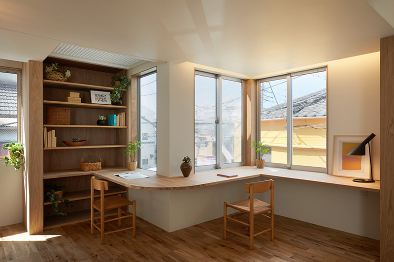 敷地南側のすぐ近くに幹線道路があり 車の騒音が懸念されたため 南側に閉じつつも いかに室内を明るくするかが 設計における課題でした。