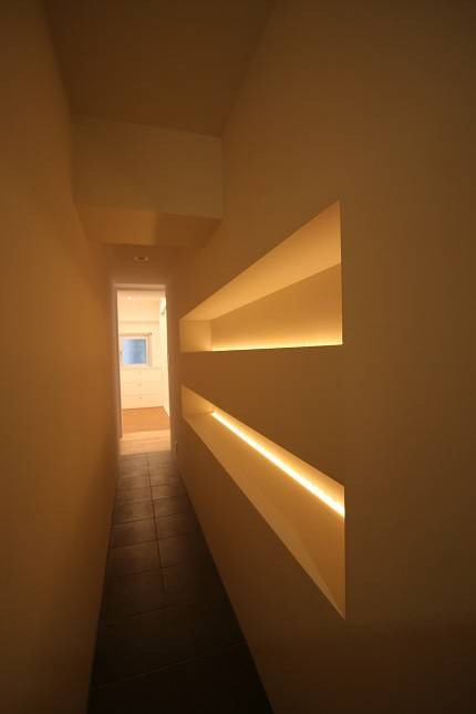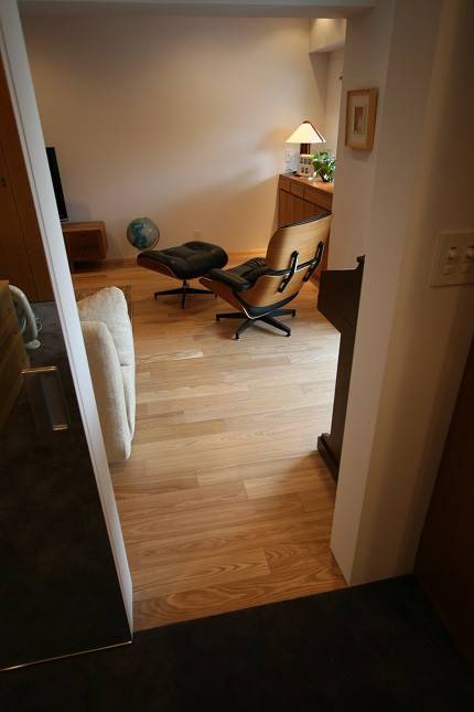 廊下にも個別の床材を割り当て、一つの部屋のような印象を持たせました。