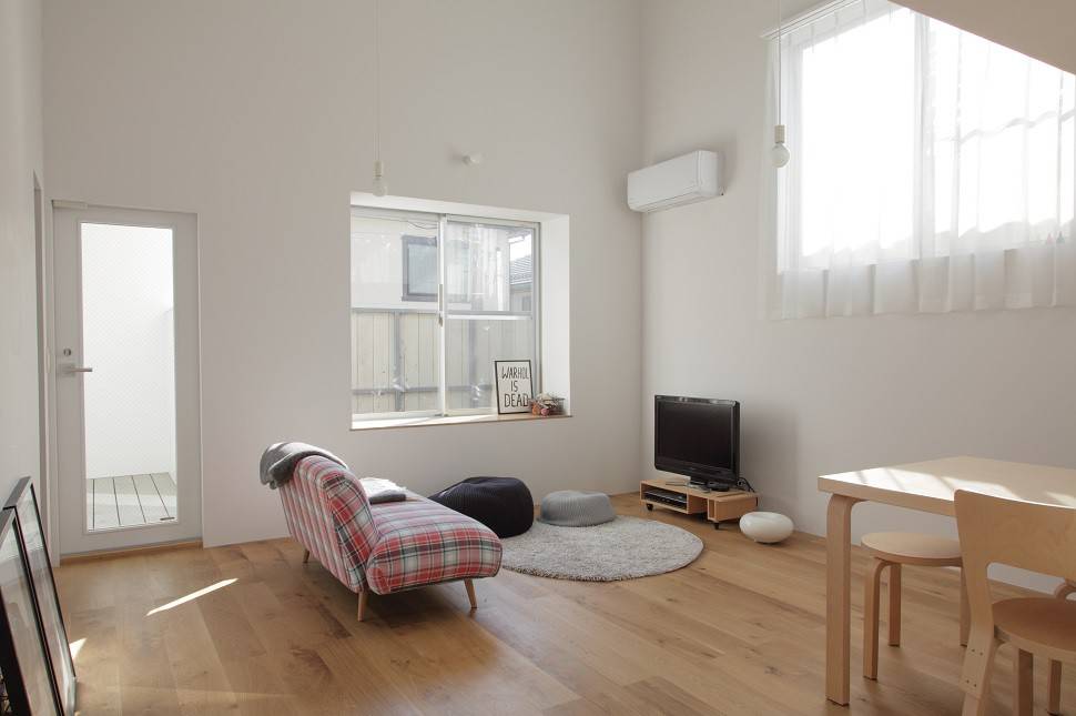 開放的なリビングとそれを取り囲む小さなバッファー空間。密集する都市の中でとても効果的で明快な構成が建ち現れた住宅となりました。