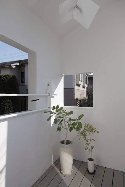 小さな部屋は(階段室やバルコニーも含めて)、それぞれの部屋の機能に加え、周囲の家からの距離を取るバッファー空間としての役割も兼ねています。