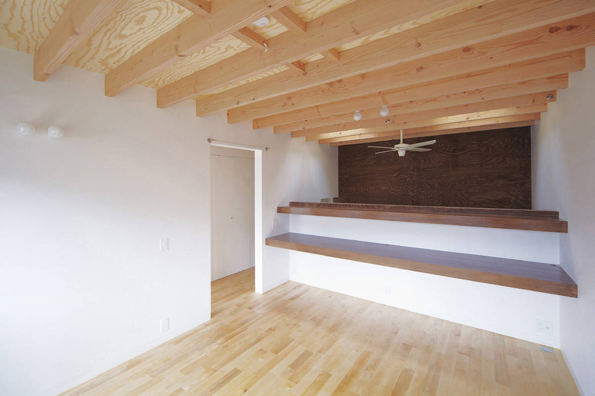 そのような厳しい環境において、南側の外部テラスと建物中央に吹き抜けを設けることで、住宅全体を明るく風通しのよいものにしています。階段室を兼ねたその吹き抜けを中心に各部屋が緩やかにつながるように配置し、もともと住まれていた平屋の住宅のように、家族の気配を感じられるものになっています。
