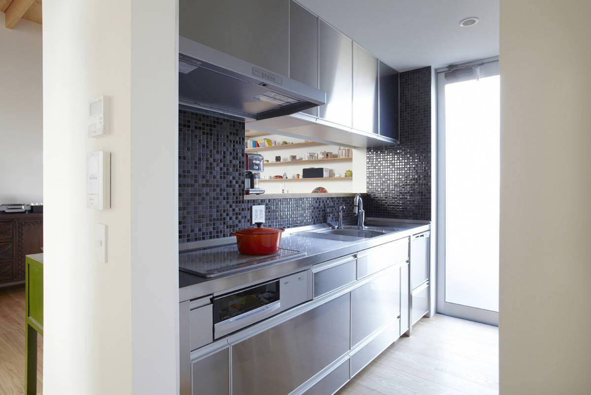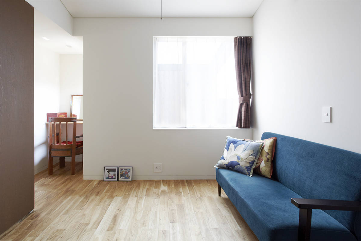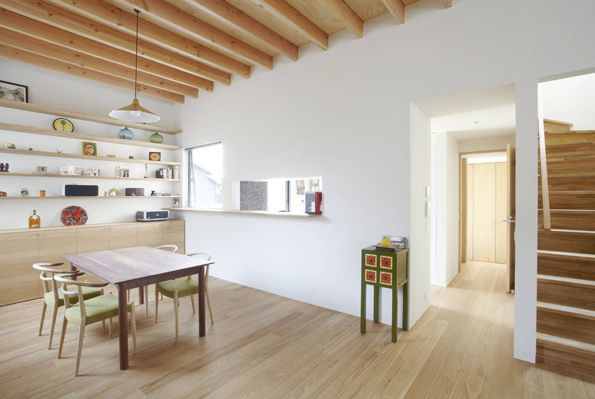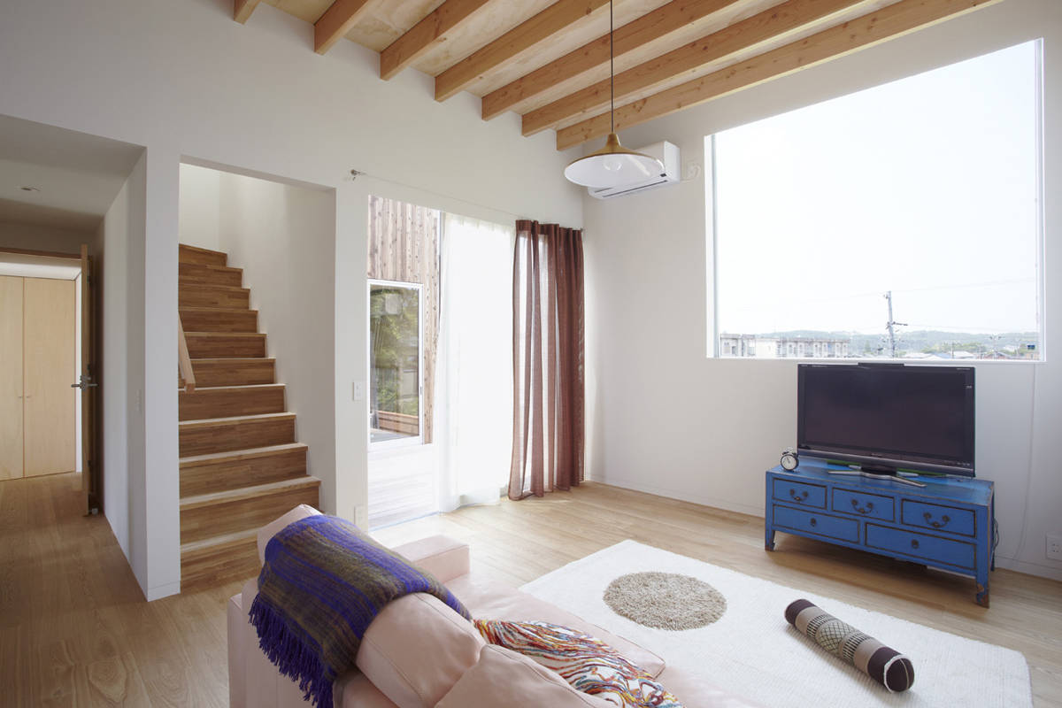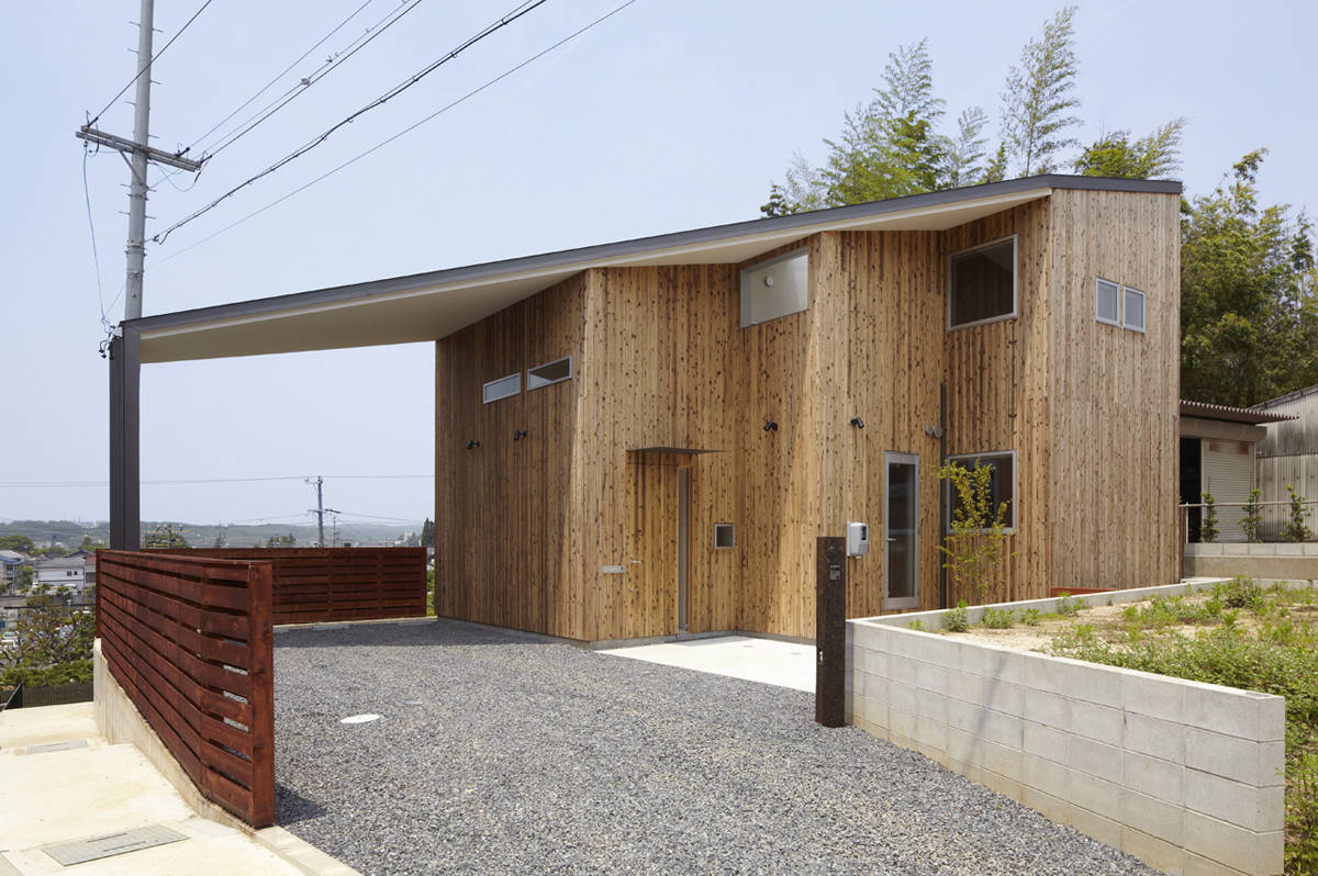 この敷地で考えたことは3つ。「車の展開スペースを確保」すること、「景色をフレーミング」すること、「地域の風景とシンクロ」すること。そのコンセプトのもと、依頼主と共に、間取りや材料にいたるまで一緒に悩み、できることは自分たちで施工しました。